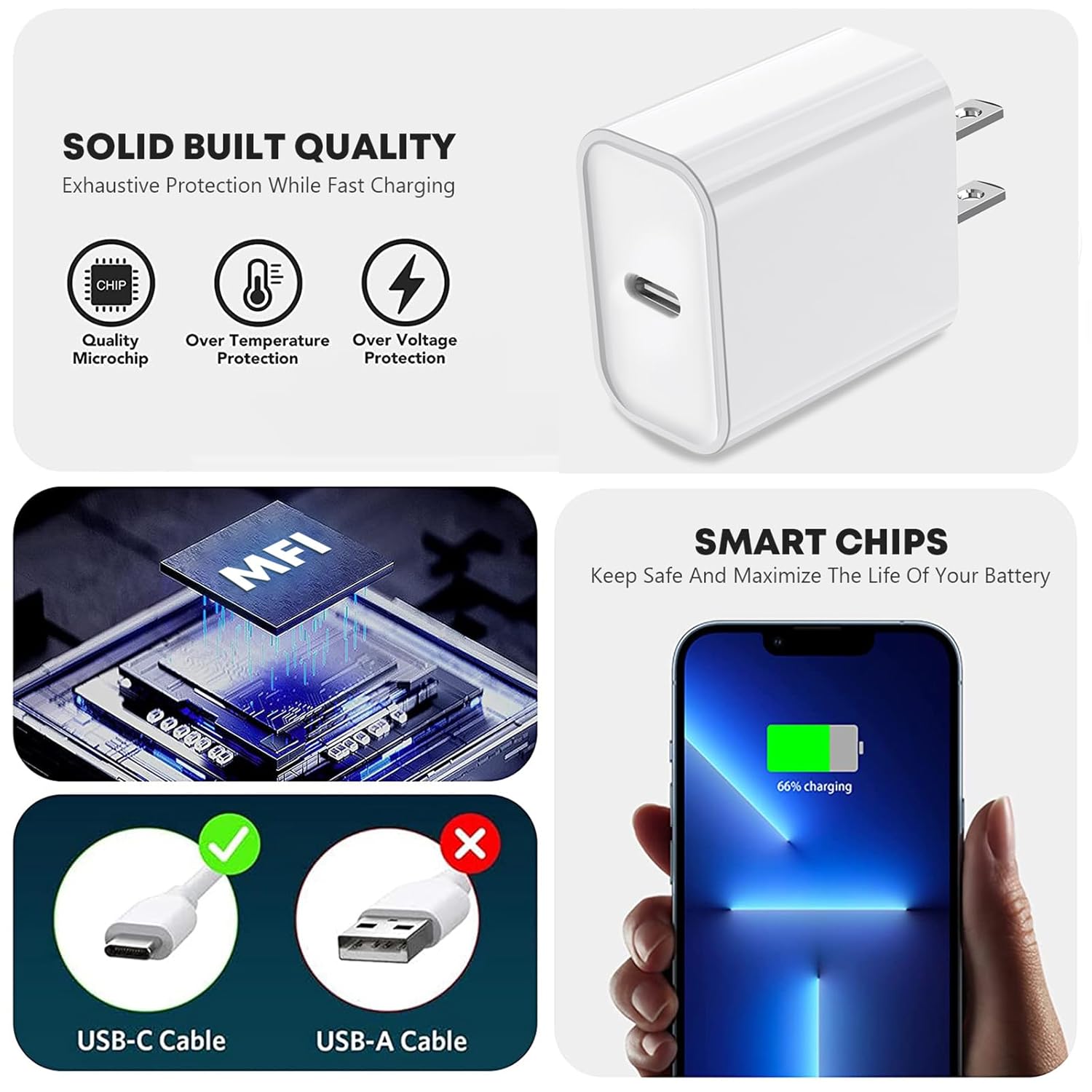iPhone 14 13 Charger, 2Pack 20W Fast Charging Type C Block (MFI Certified) Rapid Speed USB C Wall Charger Lightning Cable Cord Apple Chargers for iPhone 14 Pro Max 14 Plus 13 12 11 Pro SE XS XR X iPad