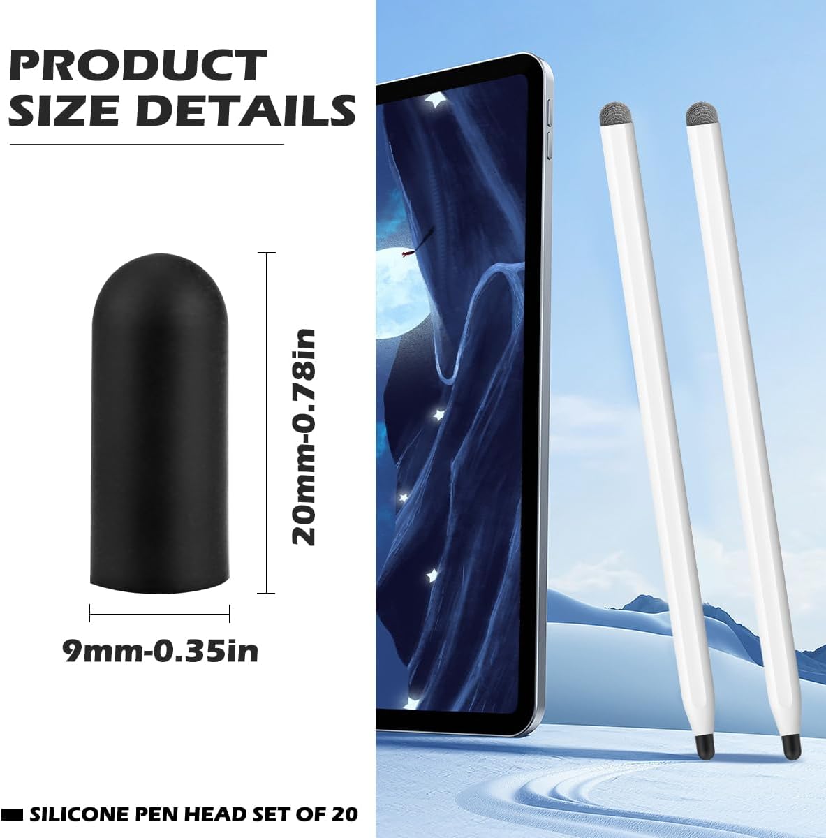 20Pcs Replacement Tips Silicone Rubber Touch Screen Pens Tips for Touch Pen (9 * 20mm)