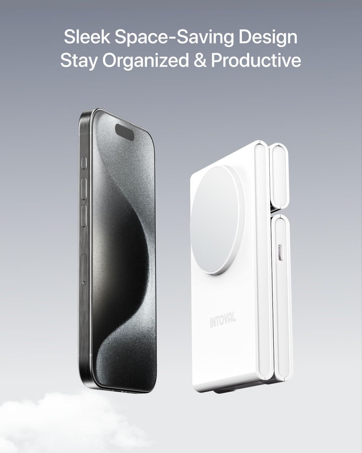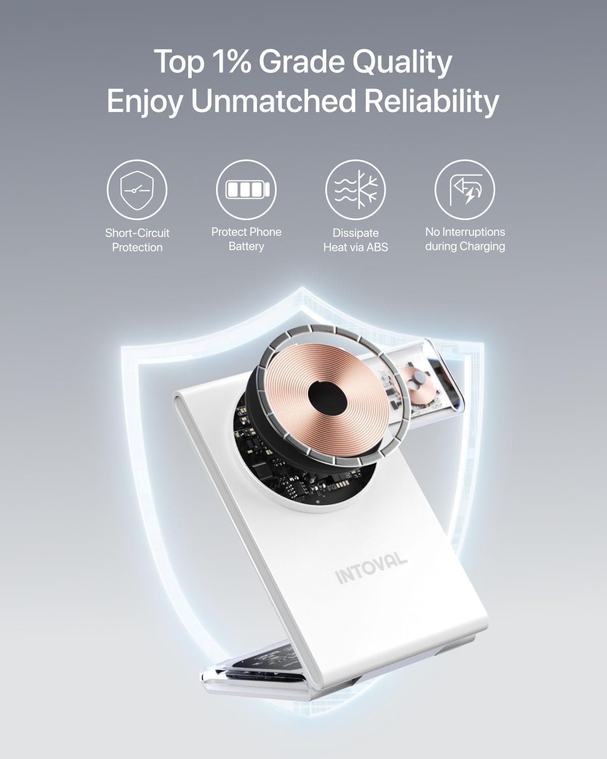 Intoval 3-in-1 Magnetic Charging Station, Travel Foldable Charging Dock for Magsafe iPhone 16 to 12(Plus/Pro/Pro Max), Apple Watch and AirPods, Desk and Bedside Trio Magnetic Stand (M5, White)