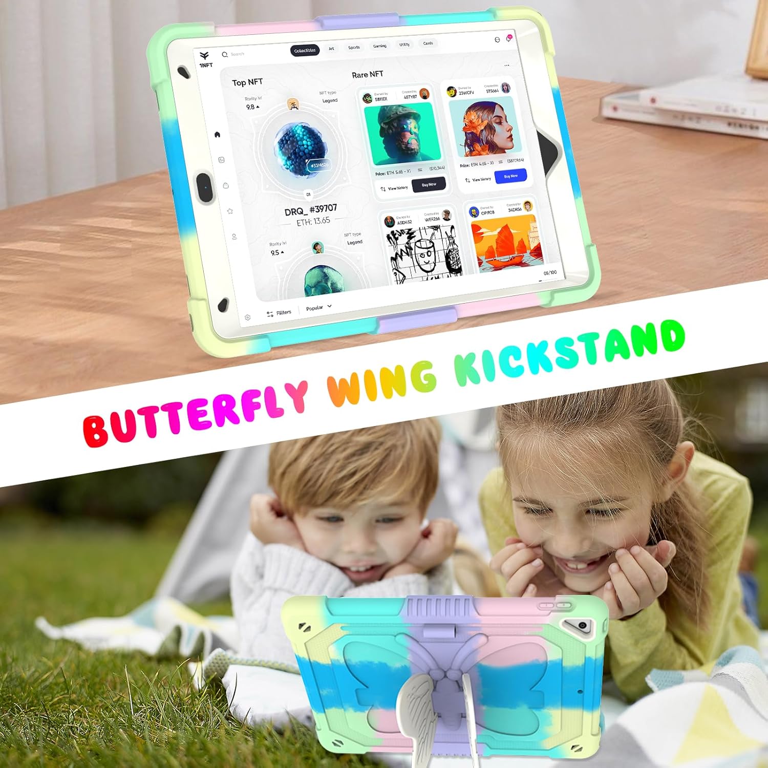 BLOSOMEET Kids Case for iPad 10.2 inch 2021 with Tempered Glass Screen Protector,iPad 9th/8th/7th Generation Case with Stand Pencil Holder & Shoulder Strap,Colorful Green
