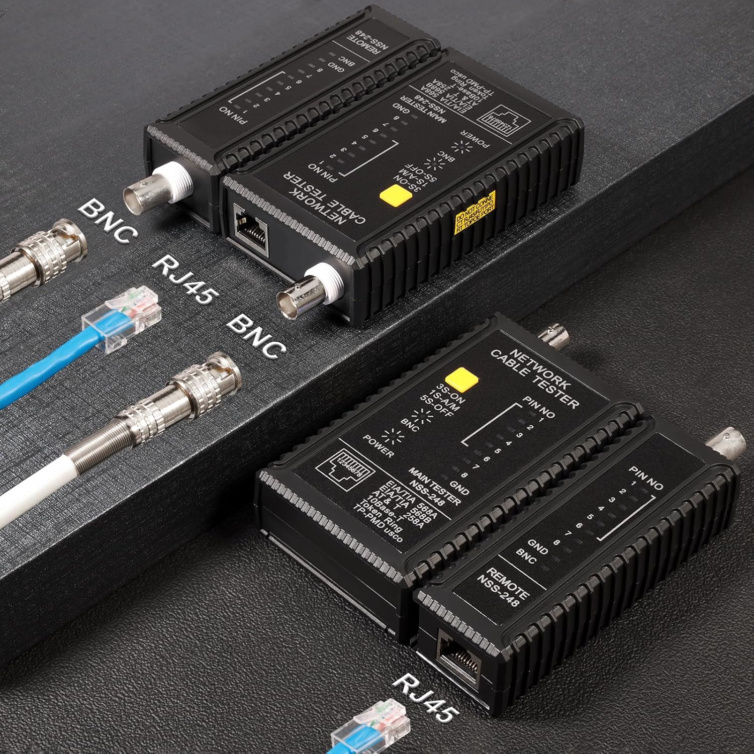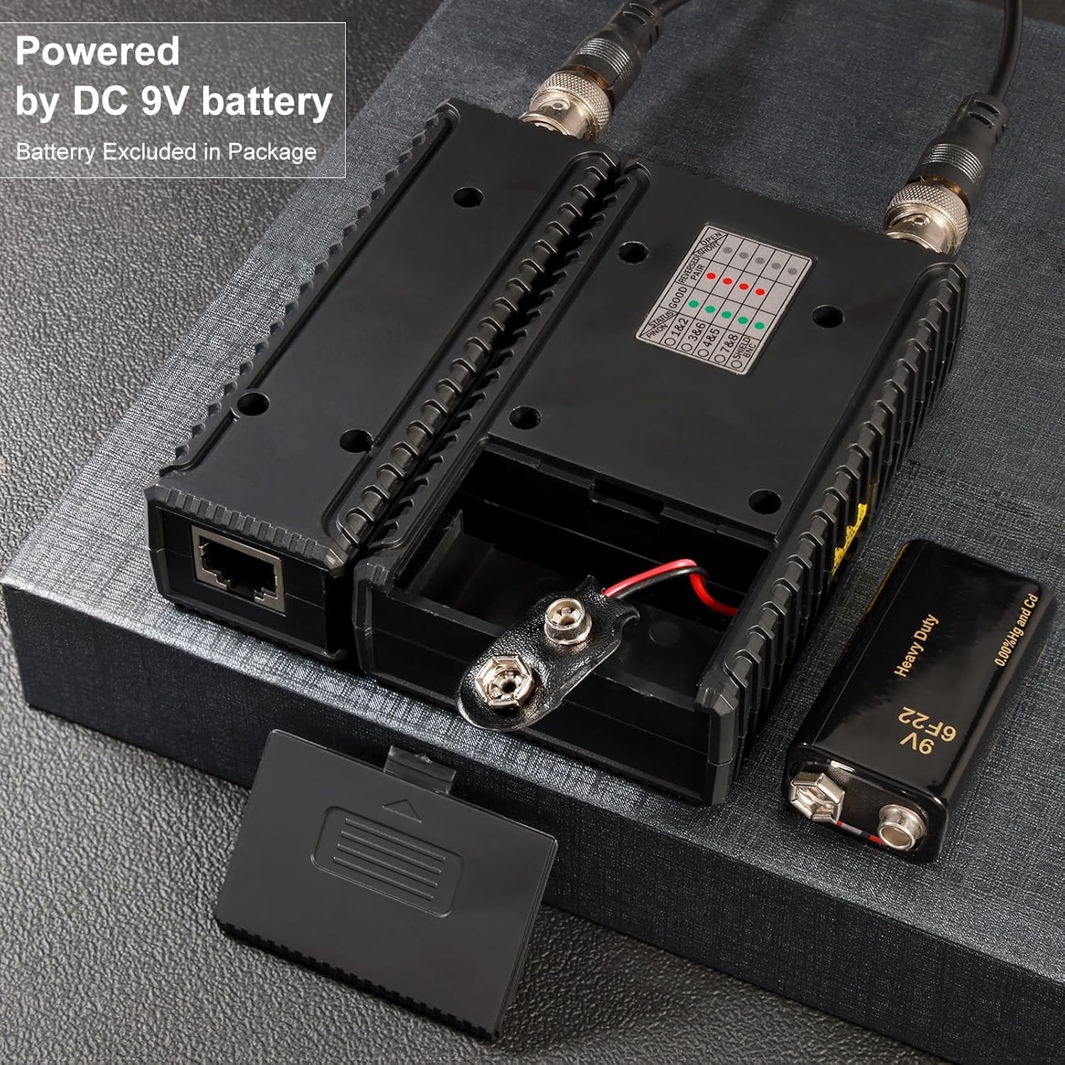 Dual-Function Coaxial & RJ45 Network Cable Tester with 2-Pack BNC Male to F Female Adapters, CAT5/CAT6/Coax Continuity Checker (Battery Not Included)