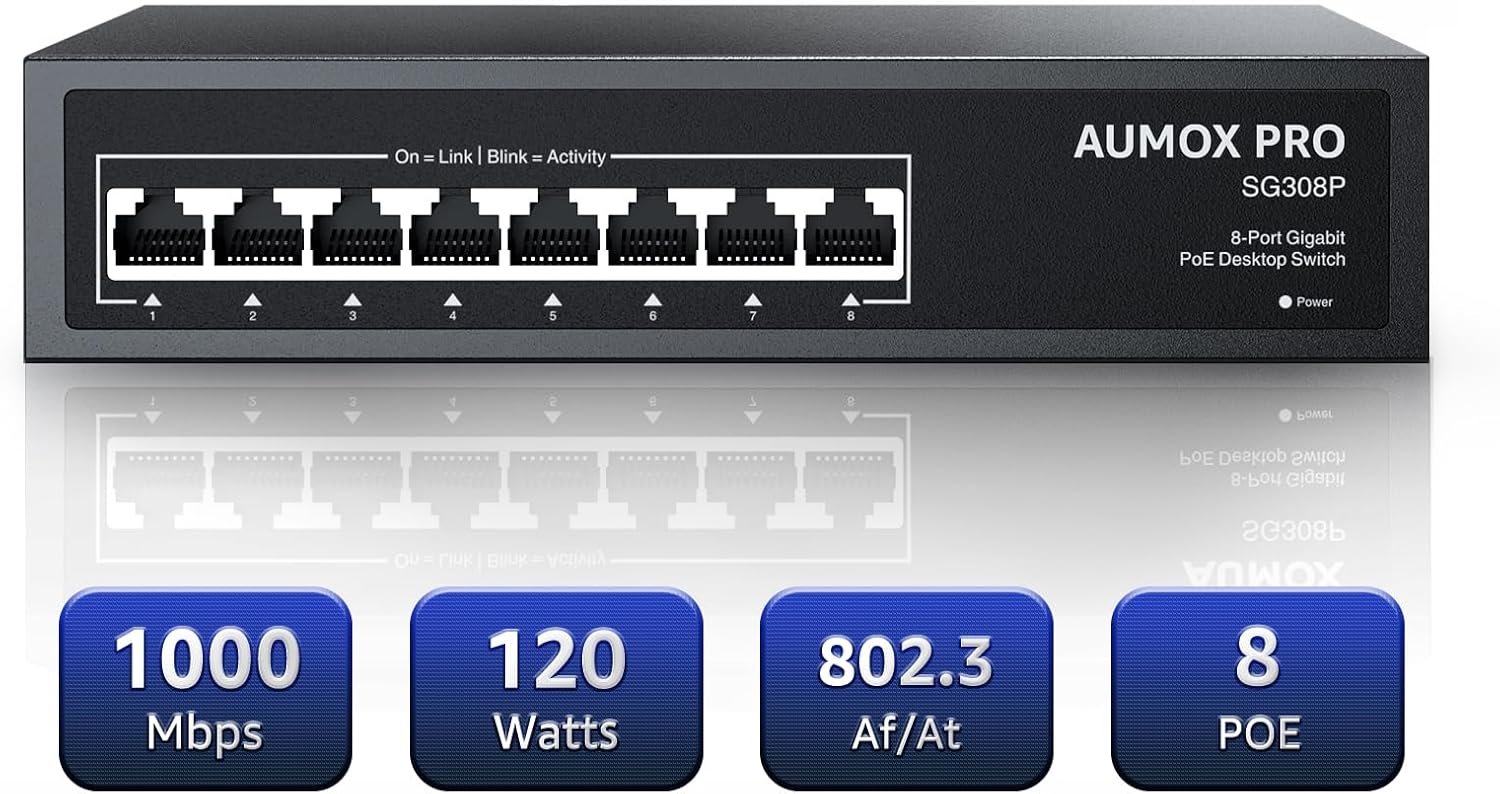 - Effortless Plug & Play Setup: The AUMOX PRO 8-Port Unmanaged Switch requires no configuration! Simply connect the power and network cables, and the AUMOX PRO SG308P is ready to go. Perfect for users who want a hassle-free networking solution