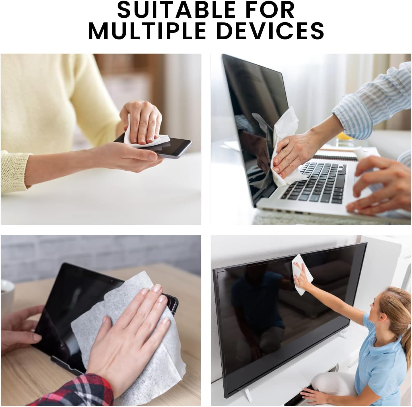 - Multi-Device Compatibility Screen Cleaner Wipes- Superior Computer Wipes and TV Cleaner: From your flat screen TV to your precious smartphone, EVEO Electronic Wipes are the universal solution. As a specialized TV cleaner for smart TVs and a gentle computer screen cleaner, these wipes ensure that every pixel on your electronic devices is as clear as the day you bought them. Use EVEO to clean multiple screens—without any worry.