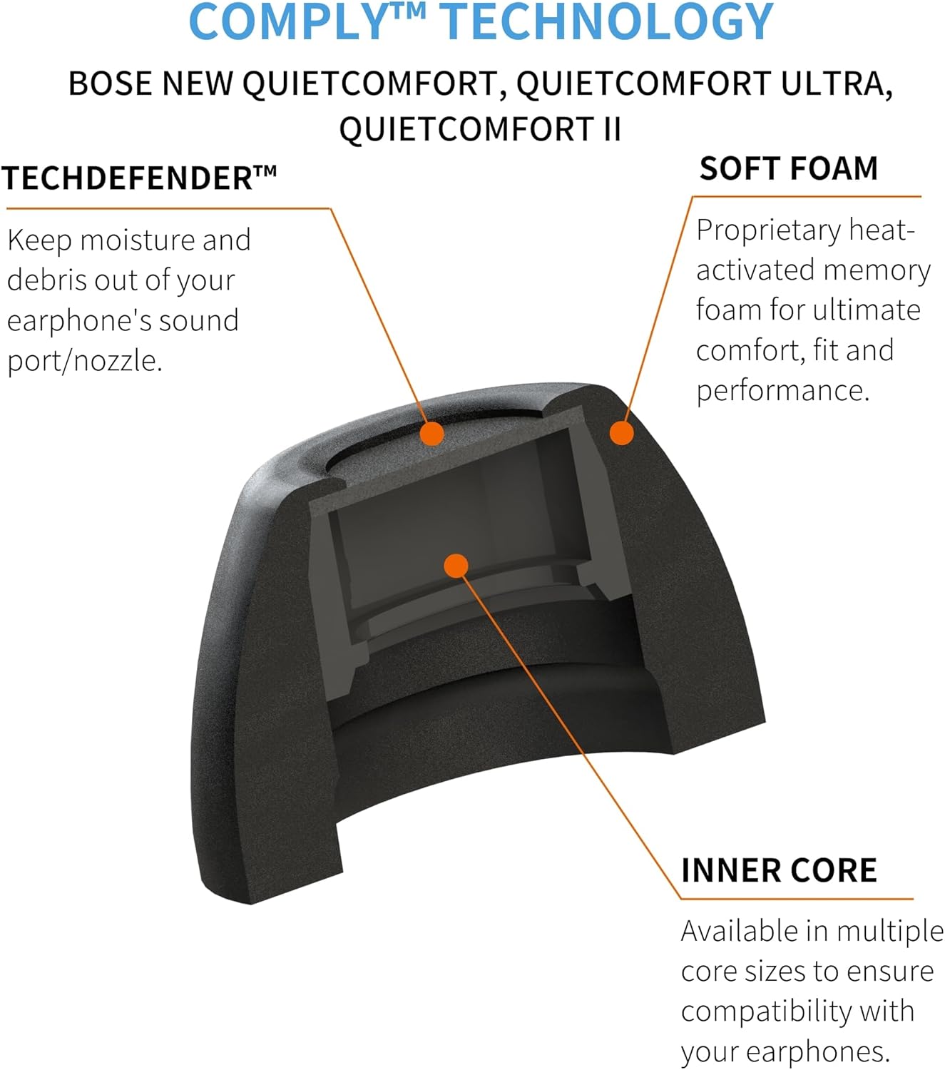 - COMPATIBILITY: Our Memory foam tips are made for Bose New QuietComfort, QuietComfort Ultra, QuietComfort II and provide a comfortable and secure in-ear fit; Won’t interfere with charging