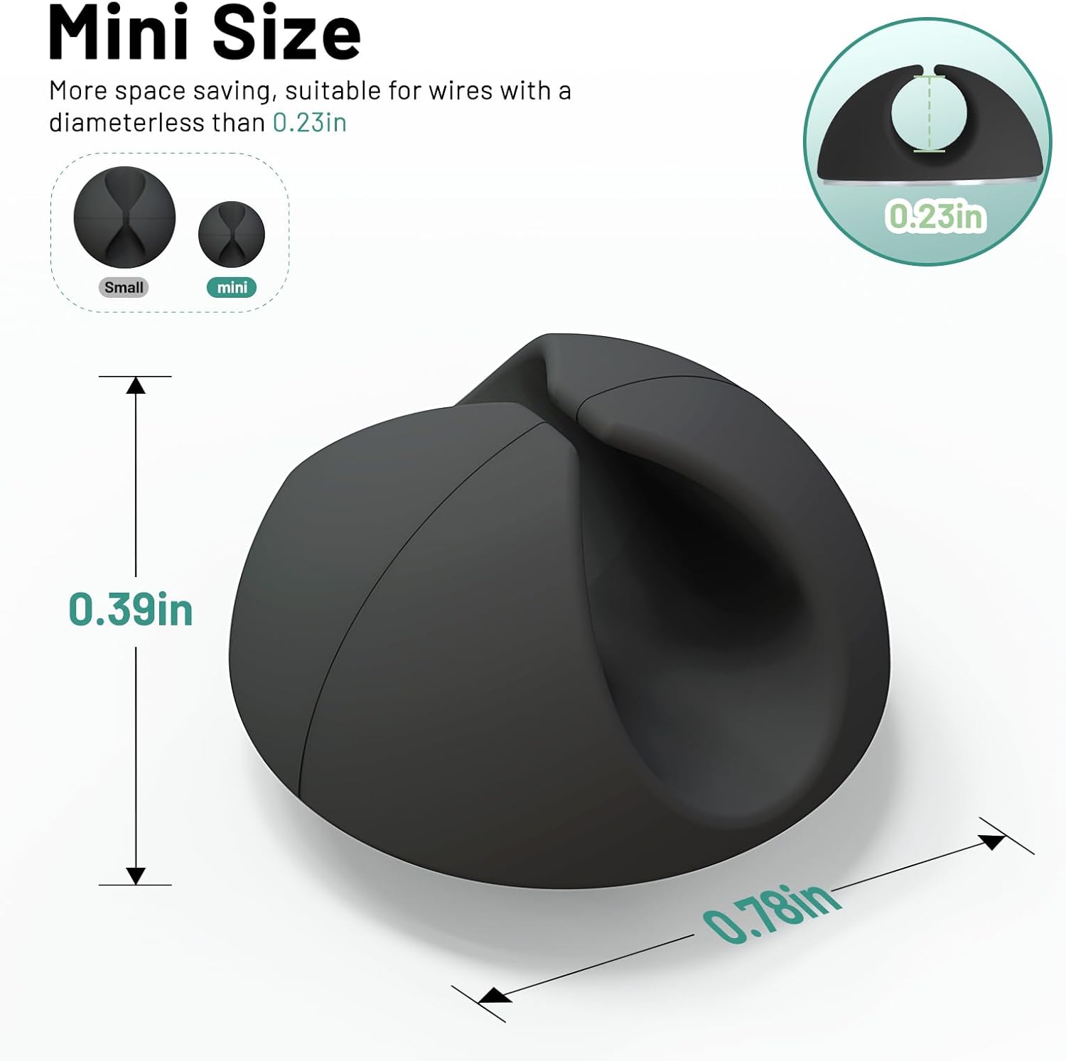 - Mini Size:The smaller one saves more space. Organizes the wires and cable on the desk, keeping the desk neat. Perfect charging cable holder. Dirt-resistant cable management clips