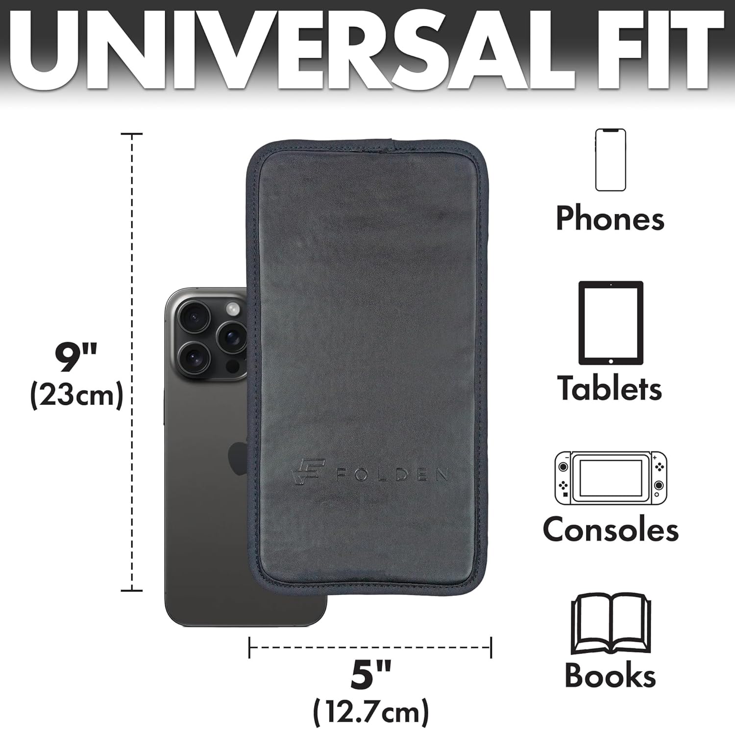 - PREMIUM VEGAN LEATHER – Folden is our exclusive premium line for work, home, travel, leisure & outdoors! This Flight Flap iPhone compatible stand for desk is crafted from sleek, durable vegan leather and features the engraved FOLDEN logo — perfect for those who value both style and function.
