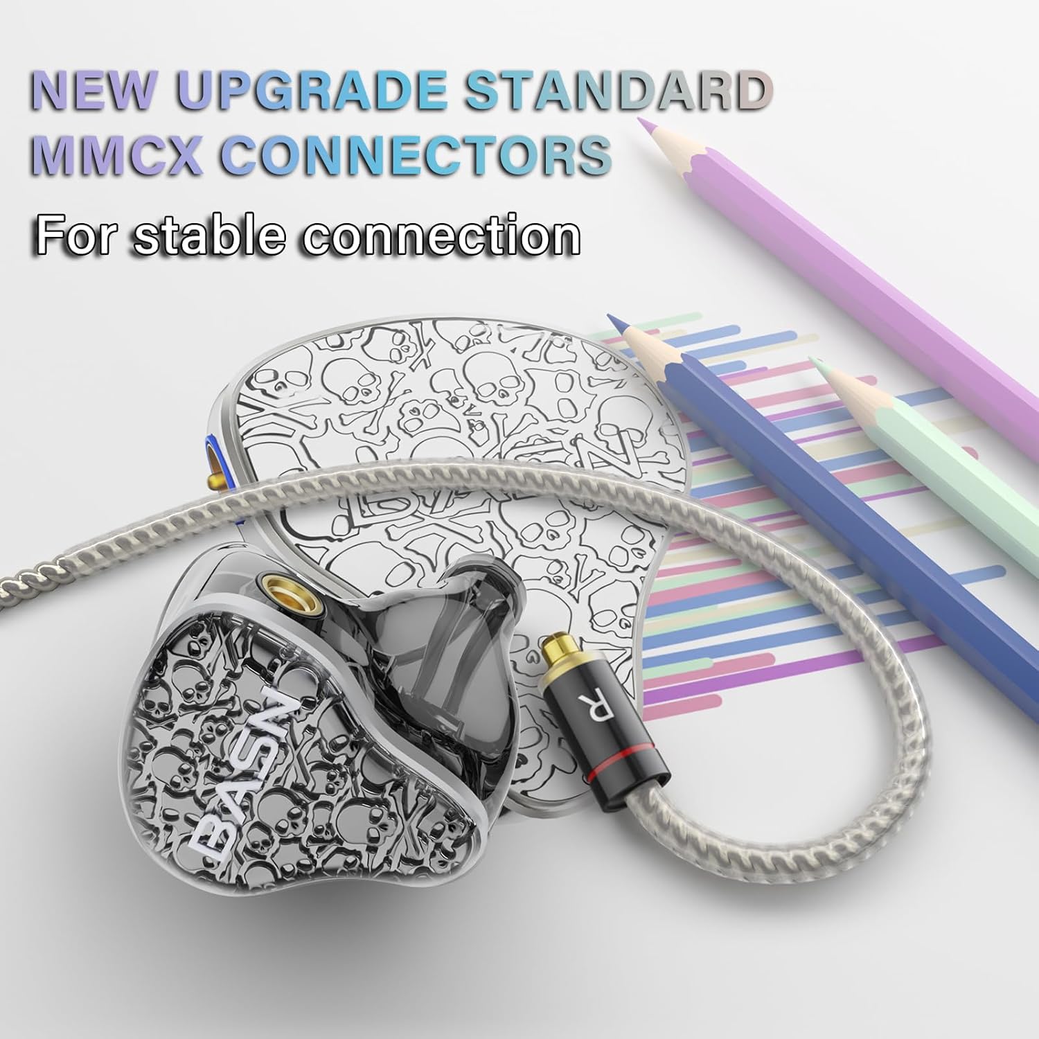 - πππππππ & ππππππππππ πππππ- The in ear earbuds come with two kinds of cables. The 4-core OFC audio cable designed for pure music listening and monitoring, it allows the Bmaster5 in ears to withstand tough nights on the stage. The mic cable with an in-line volume control for daily use with your phones. To ensure a reliable connection and provide further customization, this in ear headphones feature new upgrade MMCX connectors