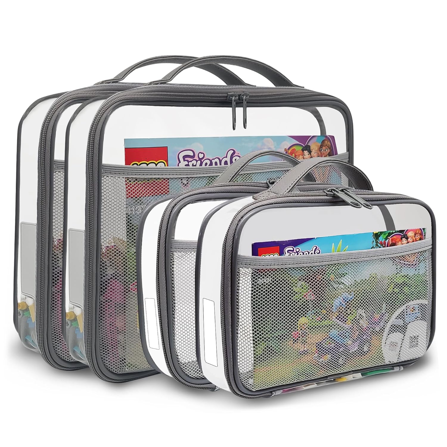 holay 4 Packs PVC Zippered Blocks Set, Toy, Clay, Board game Storage Organizer Case (Name Tag, Manual Pocket) (Gray, Small, Large)
