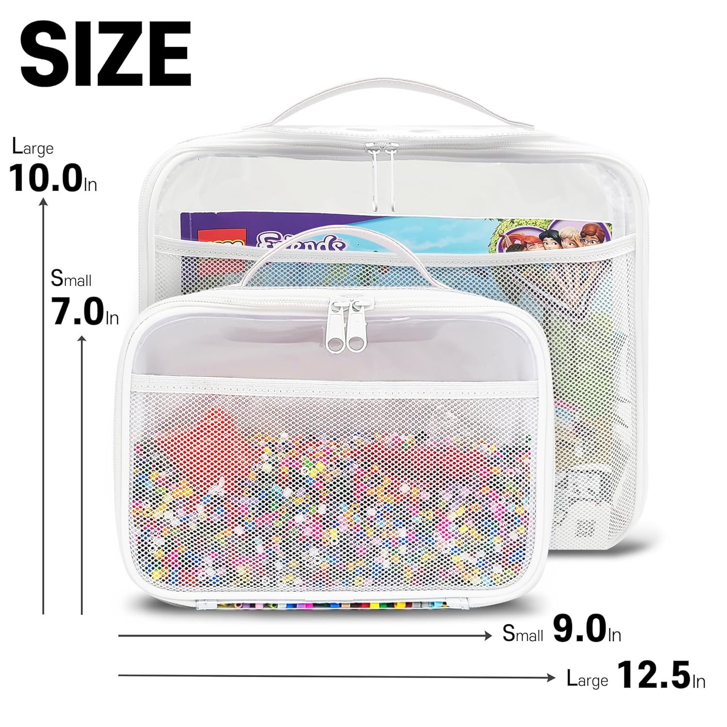 holay 4 Packs PVC Zippered Blocks Set, Toy, Clay, Board game Storage Organizer Case (Name Tag, Manual Pocket) (White, Large)