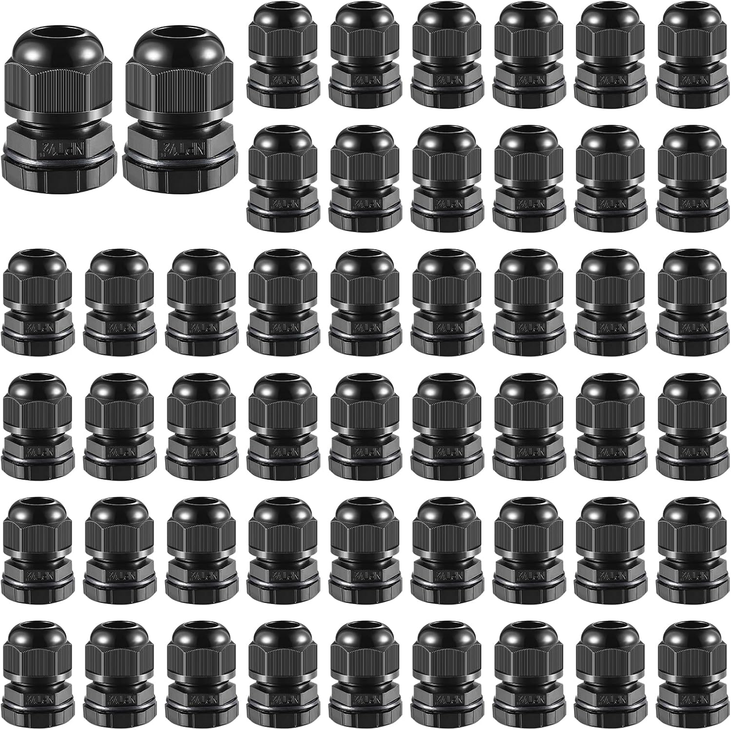50 PCS 1/2"(6-12.5mm) NPT Nylon Cable Gland Joints with Gaskets, IP68 Adjustable Lock Nut Strain Relief Cord Grip Waterproof Cable Glands - UL Listed and RoHS Compliant