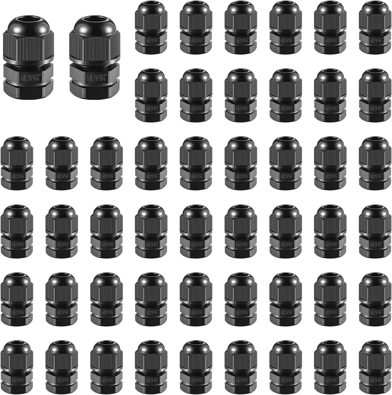 50 PCS 1/4"(4-8mm) NPT Nylon Cable Gland Joints with Gaskets, IP68 Adjustable Lock Nut Strain Relief Cord Grip Waterproof Cable Glands - UL Listed and RoHS Compliant