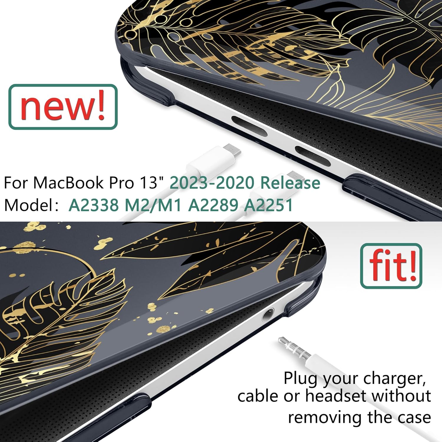 TWOLSKOO Compatible with MacBook Pro 13 inch Case 2023-2016 A2338 M2/M1 A2251 A2289 A2159 A1989 A1706, Plastic Hard Shell Cover & Keyboard Skin & Screen Protector - Golden Tropical Leaf