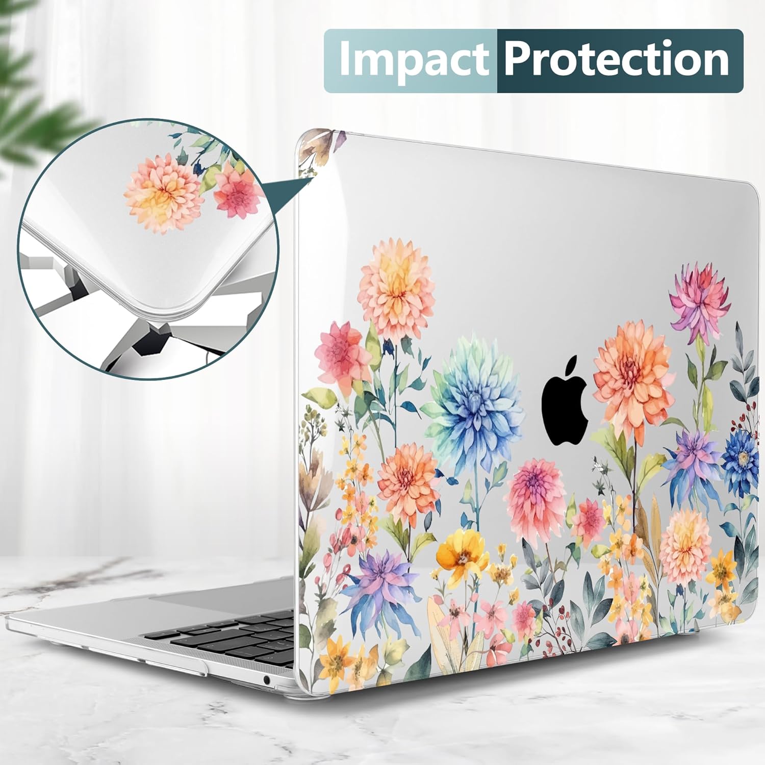 TWOLSKOO Compatible with MacBook Pro 13 inch Case 2023-2016 A2338 M2/M1 A2251 A2289 A2159 A1989 A1706, Plastic Hard Shell Cover & Keyboard Skin & Screen Protector - Beautiful Flowers