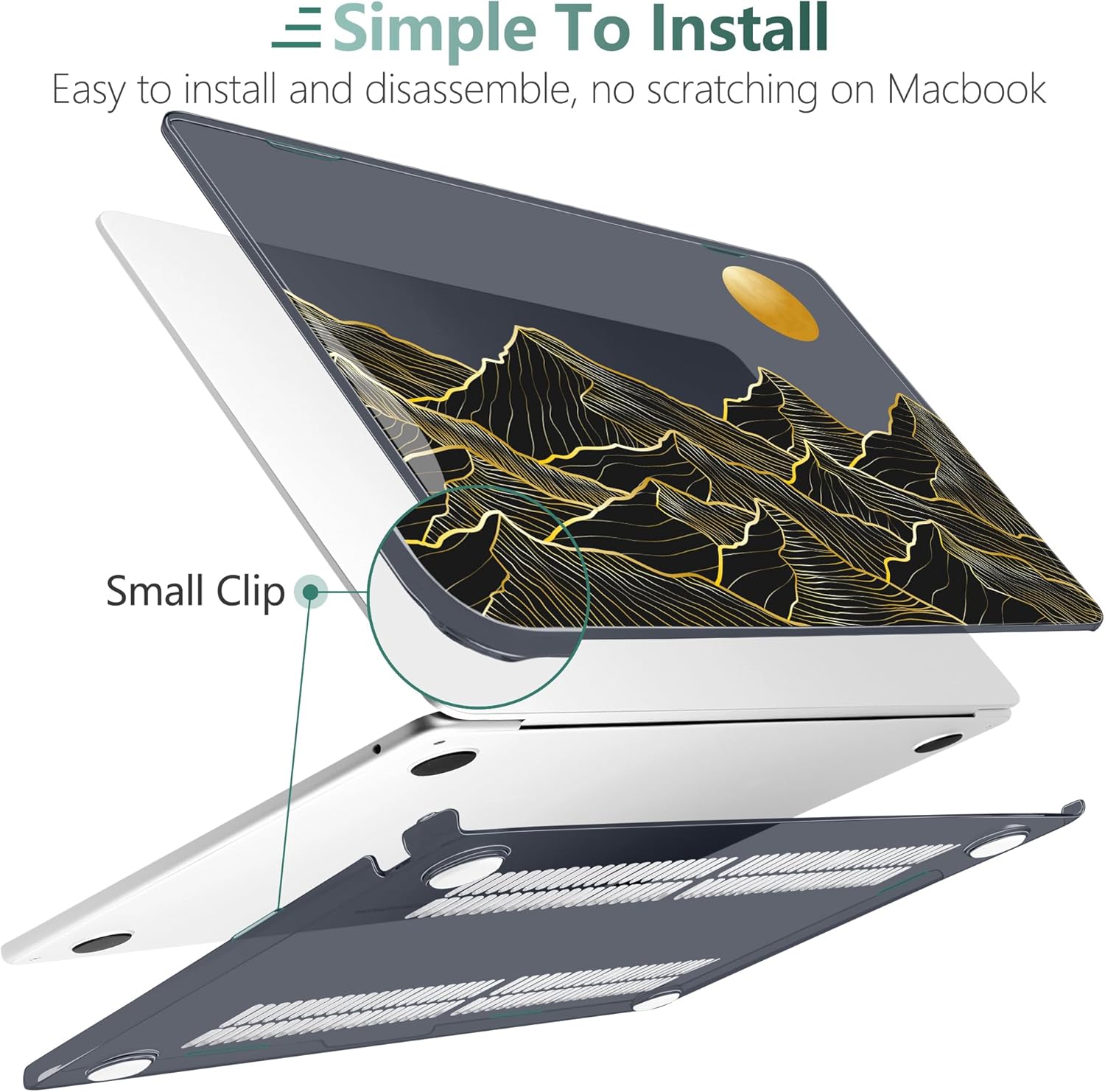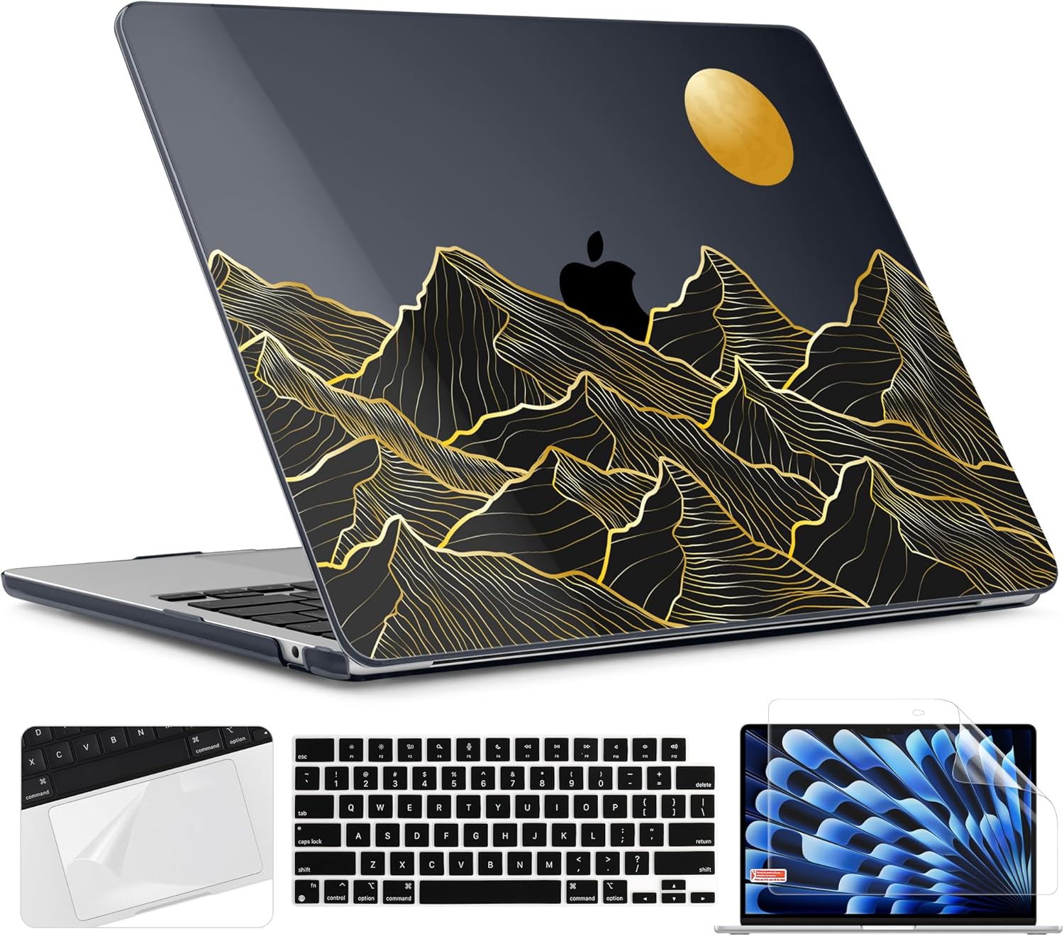 TWOLSKOO Compatible with M4 MacBook Air 15 inch Case 2025-2023 Released Model M4 A3241 M3 A3114 M2 A2941, Plastic Hard Shell & Screen Protector & Keyboard Cover & Trackpad Film, Golden Mountain