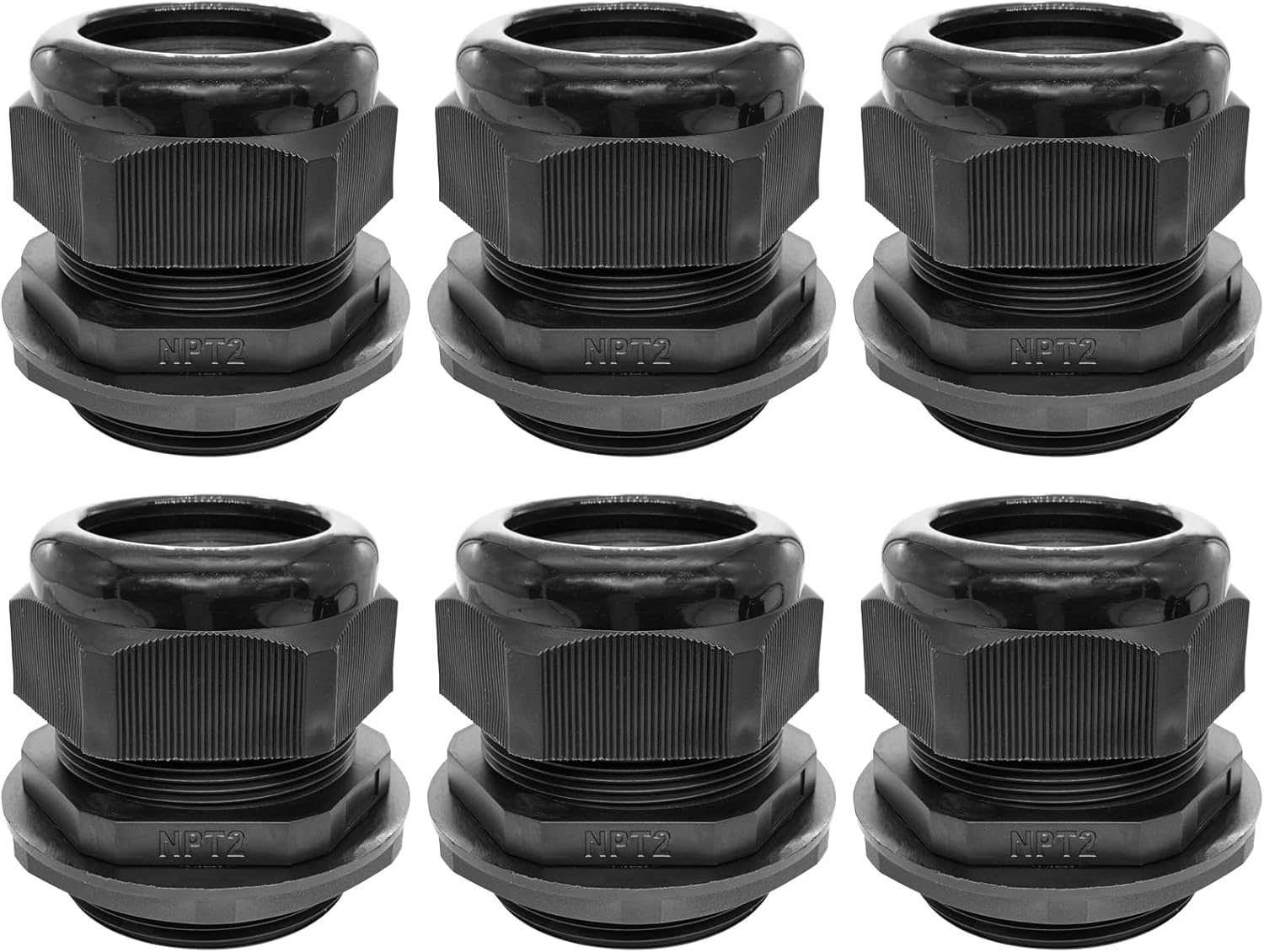 Cable Glands-PENGLIN 2” NPT Nylon Cable Connector,IP68 Waterproof Strain Relief Cord Adjustable Connector With Gaskets for Electrical Box (2 Inch (6-Pack))