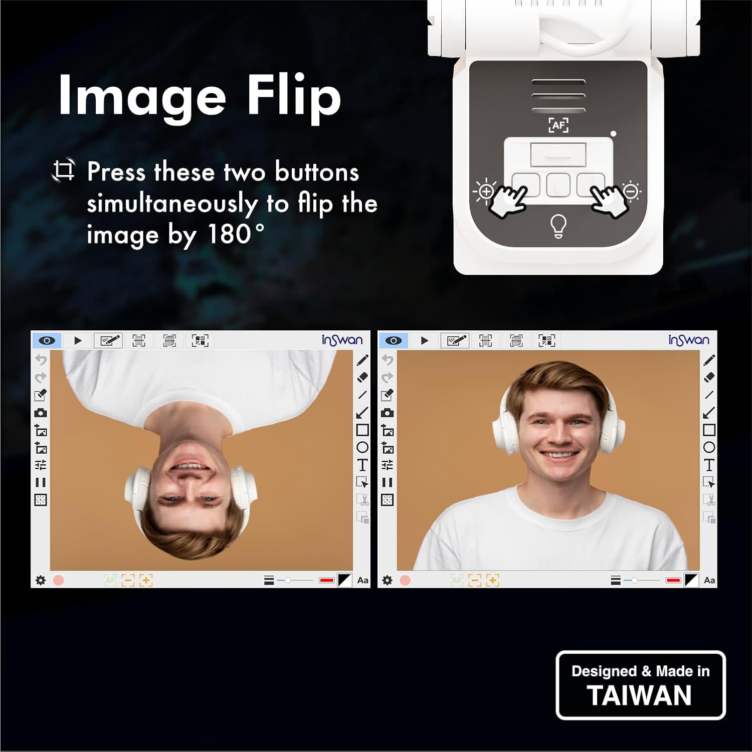 - [2-in-1 Document Camera and Webcam] Use INS-Flip 4 as a document camera when you need to demonstrate solutions to using a pen and paper, share documents, books, worksheets, or show products & 3D objects in great detail or flip the camera to use it as a webcam for online meeting or web conference.