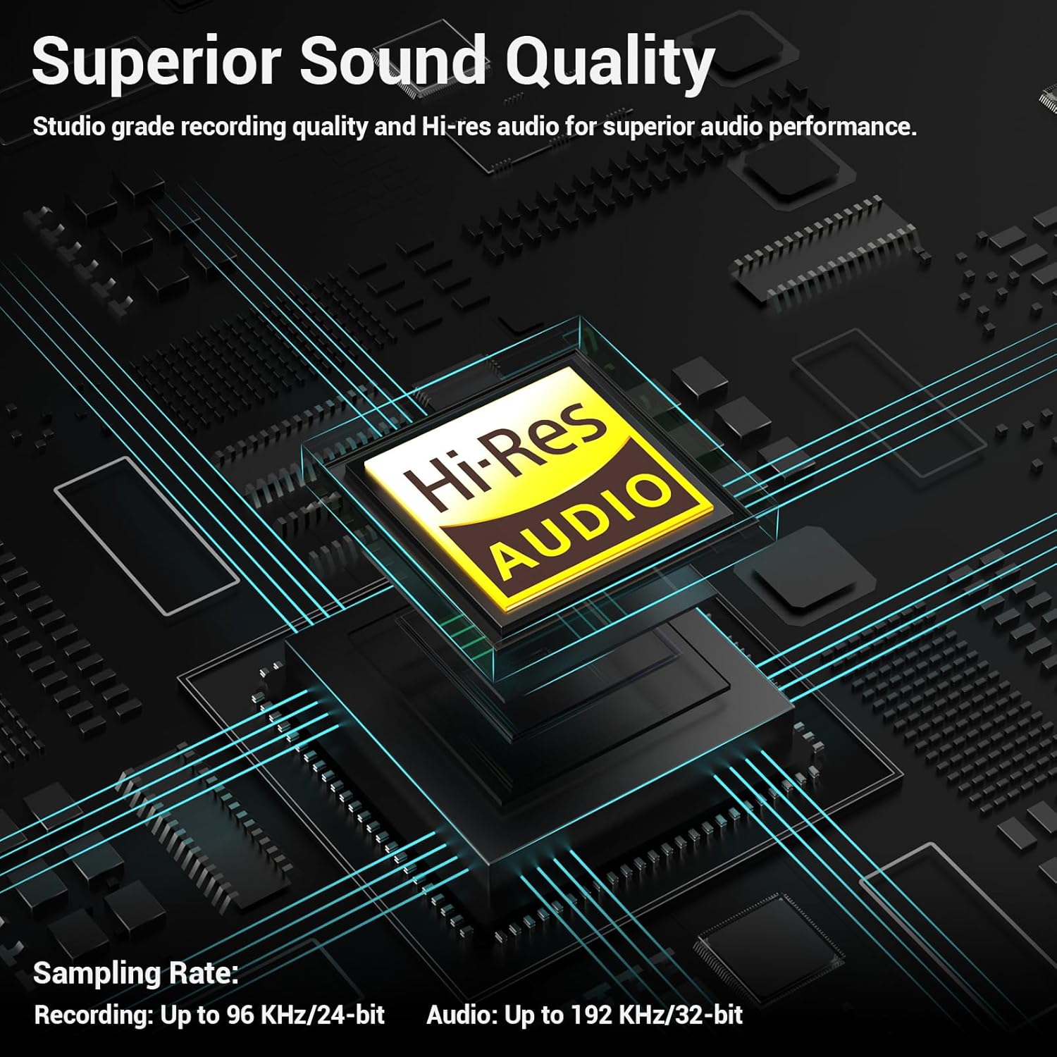 - [Studio Recording Quality] – The Built-in advanced chip enables Cubilux CB5 to capture crisp and precise sound with decent clarity up to 96 KHz/24-bit, providing professional audio content for your performance.