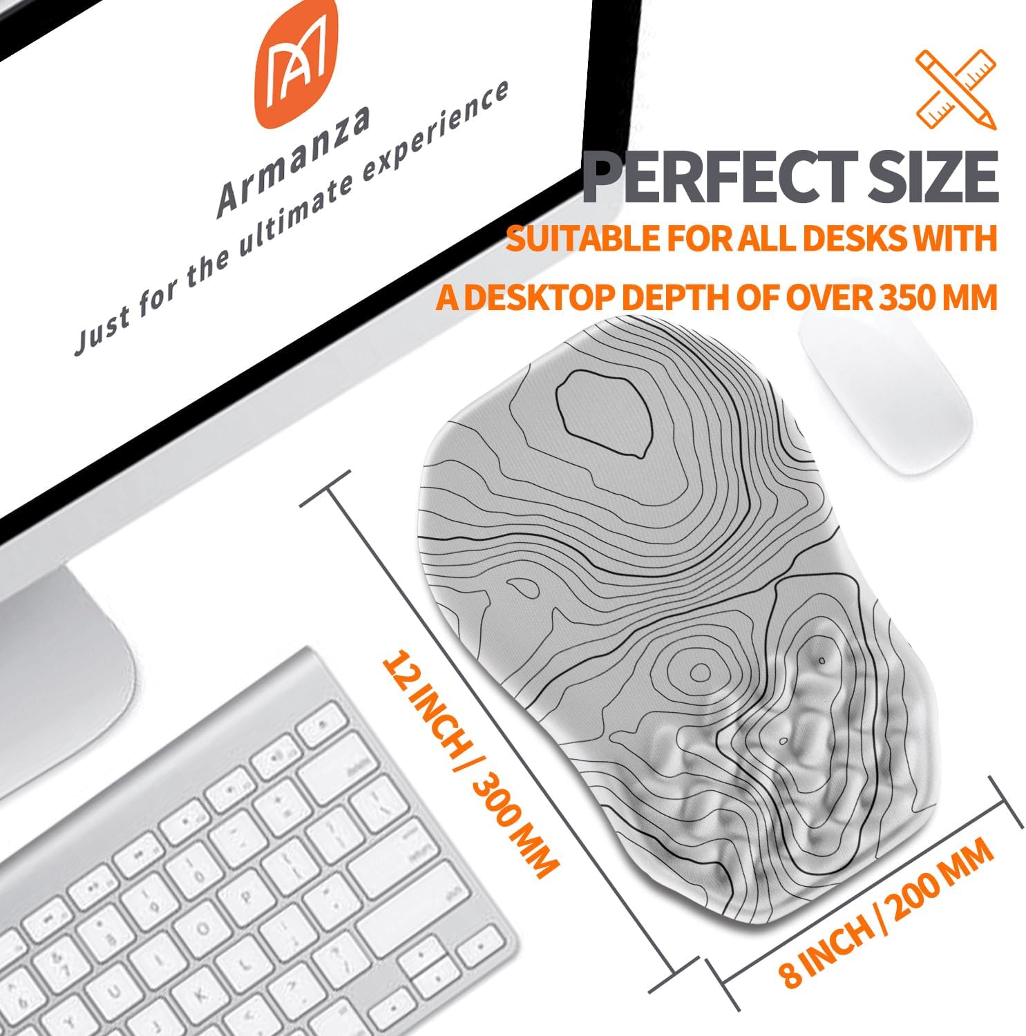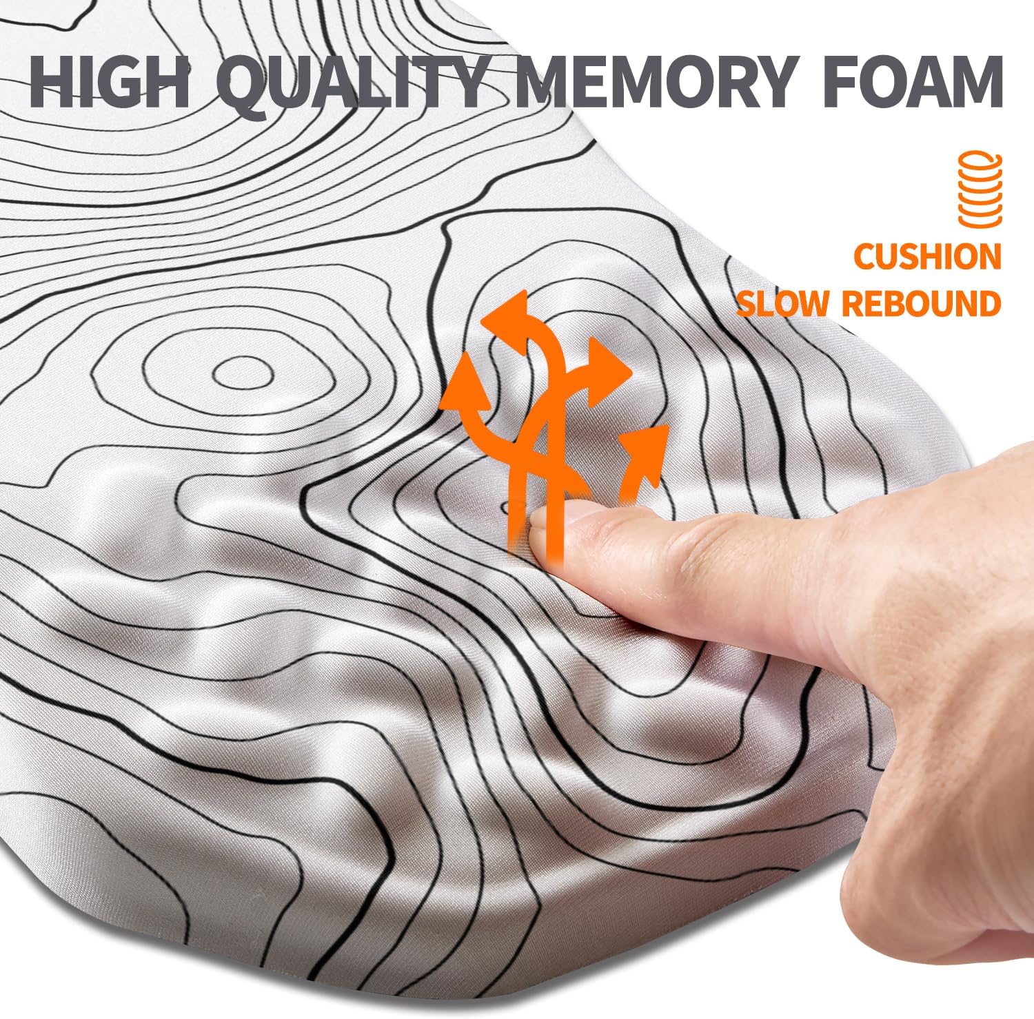 Ergonomic Slope Mouse Pad Wrist Support, Wrist Rest Mousepad for Carpal Tunnel Pain Relief with Massage Bulge and Slow Rebound Memory Foam (12x8 inch, White Contour Lines)
