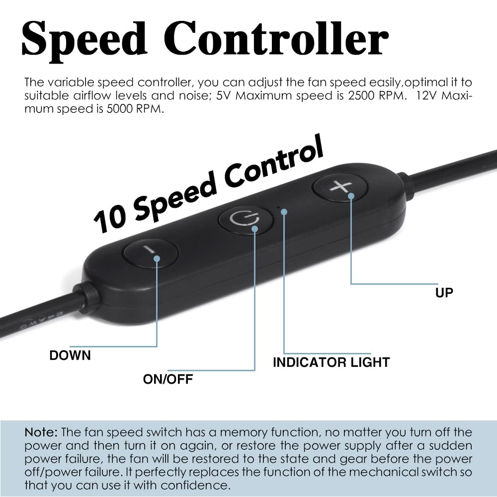 - 【10 Speed】: Take control of the airflow level with our specially designed speed controller. With 10 adjustable speeds, you can easily customize the cooling intensity to meet your specific needs. Whether you require a gentle breeze for a subtle cooling effect or a stronger airflow for more demanding applications, this fan has you covered.
