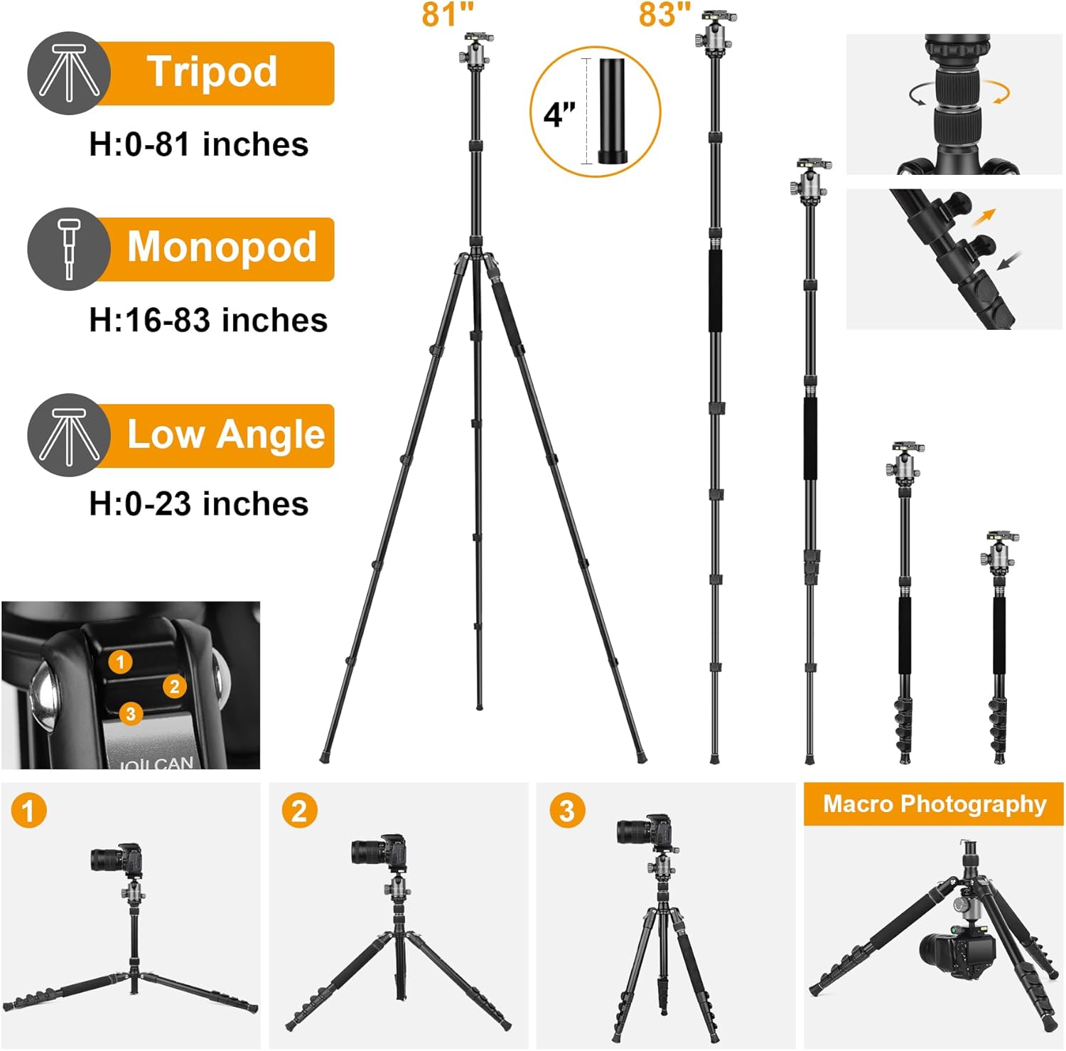 JOILCAN Tripod for Camera, 81" Aluminum Camera Tripod Monopod, Heavy Duty Travel Tripods for Spotting Scope Binoculars Laser Level, Payload 35Lb