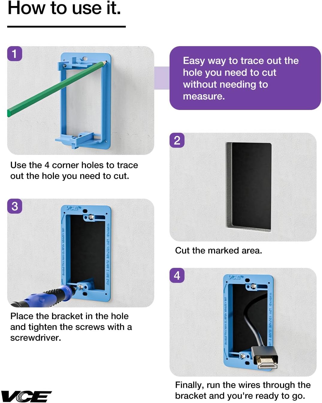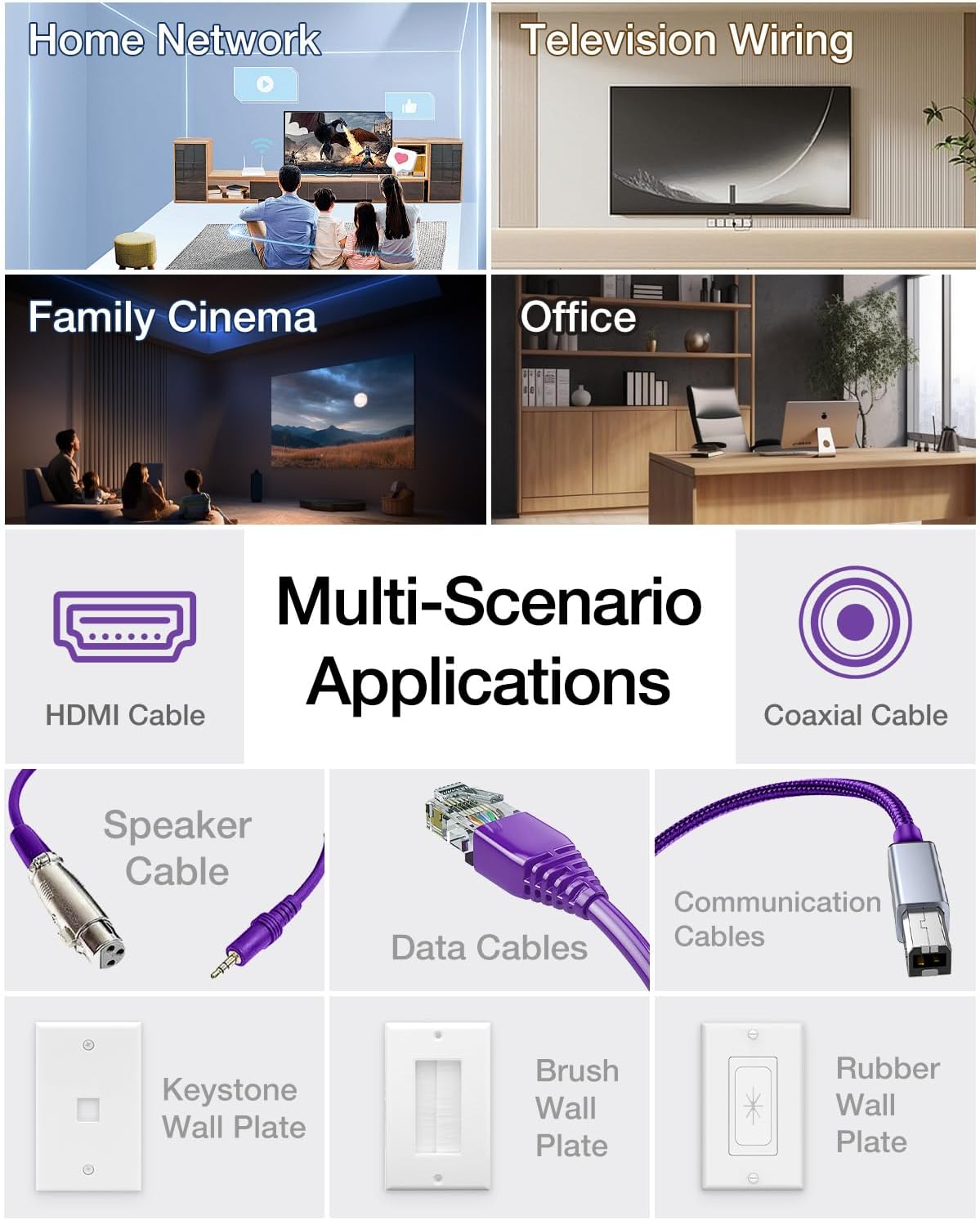 - WIDE APPLICATION: It is suitable for a variety of scenarios, including home networking, TV backplane wiring, home theater, office, etc. It can not only be used for low-voltage cable (such as speaker cables, coaxial cables, HDMI and data/communication cables) installation, but also can be used in combination with a variety of panels, such as HDMI, Ethernet, and brushes. It provides quality solutions under various wiring needs.