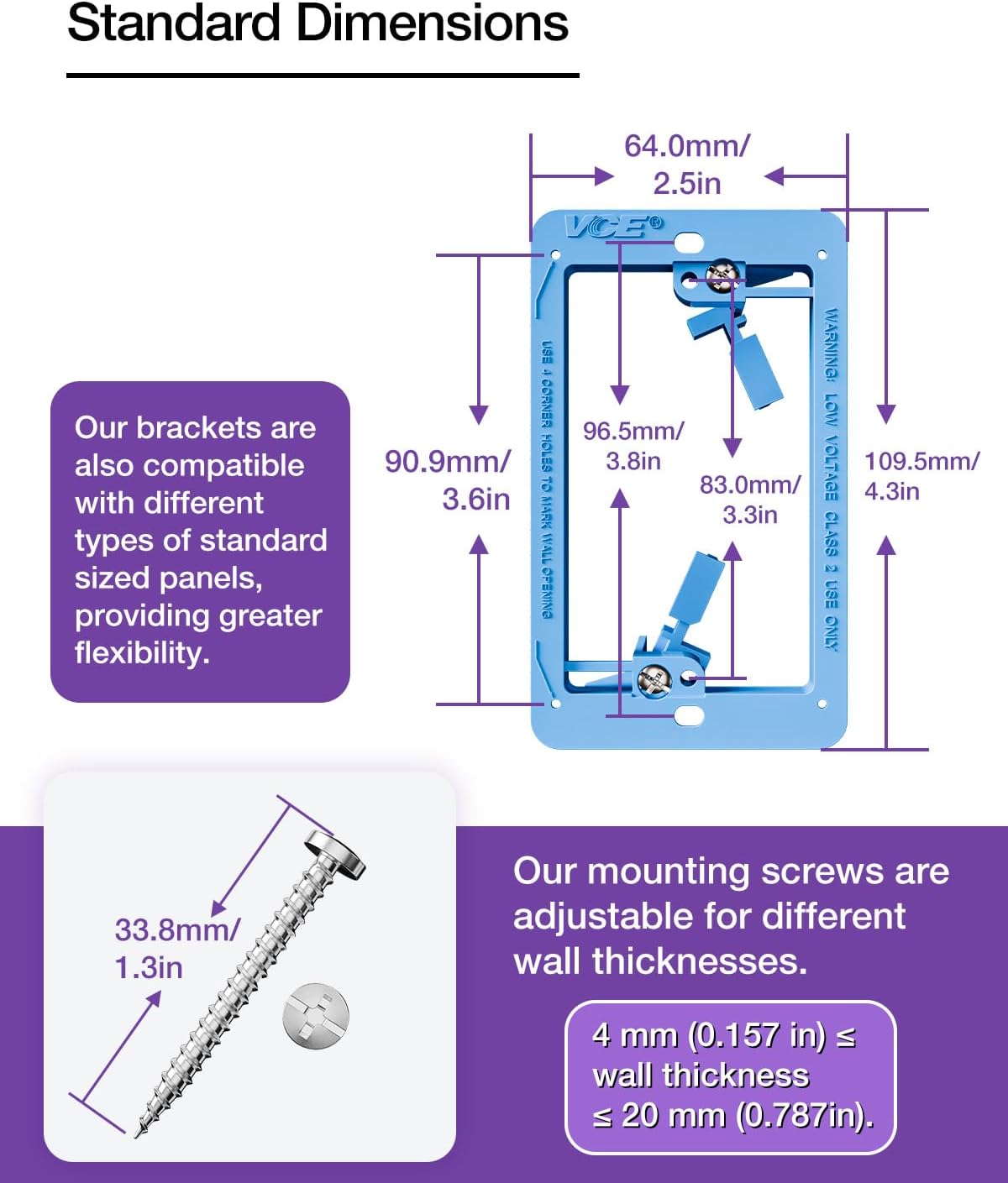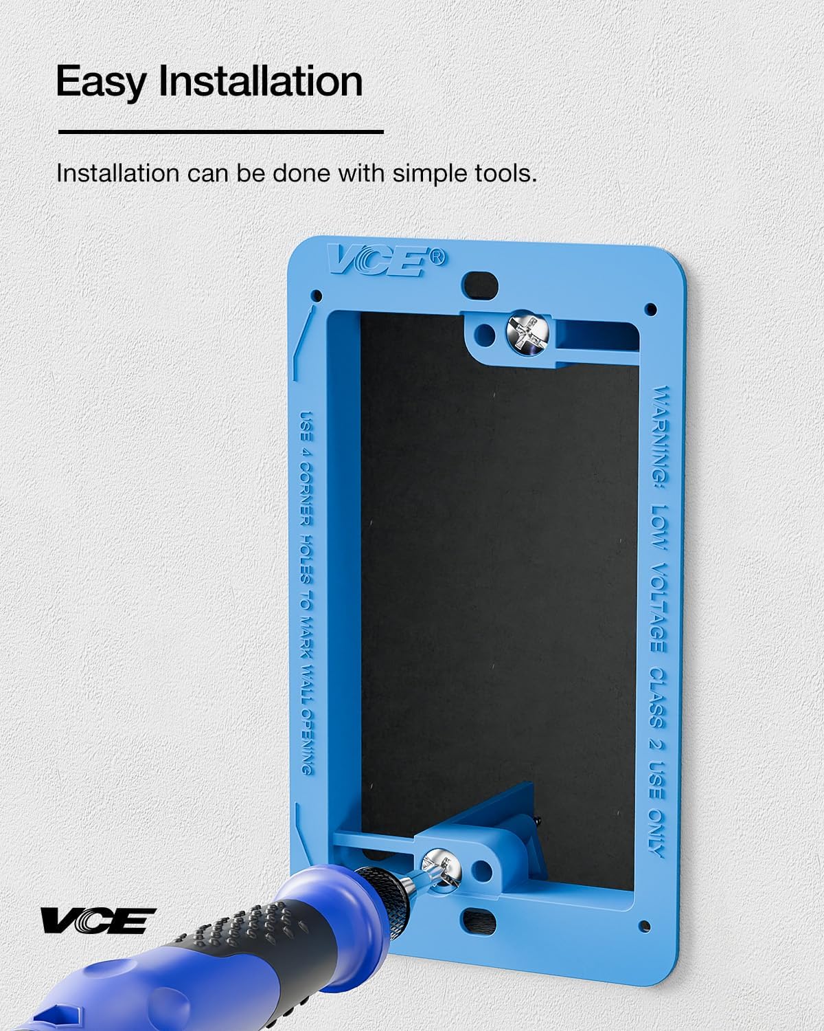 - EFFORTLESS INSTALLATION: This low voltage bracket is extremely easy to install, simply cut holes in the wall according to the 4 corner hole markings, then insert the bracket and tighten the two clamping wings to complete the installation. The bracket supports horizontal or vertical mounting, easy to operate, even if you don't have professional knowledge.