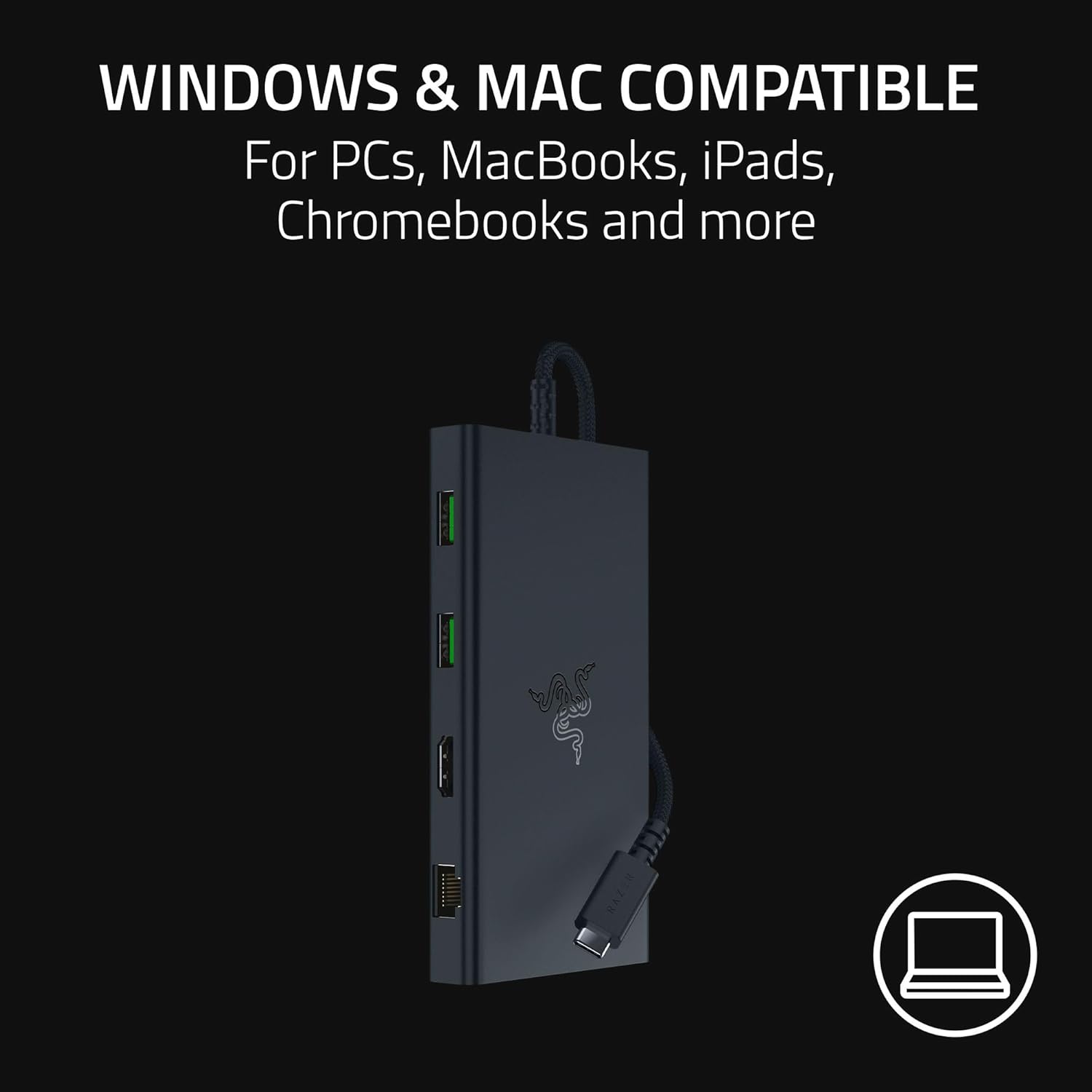 - WINDOWS & MAC COMPATIBLE — Razer USB C Dock adds tons of port connectivity to almost any device, whether it be a Windows PC, Mac, iPad, or Chromebook. Designed to complement both desktop setups and on-the-go travellers