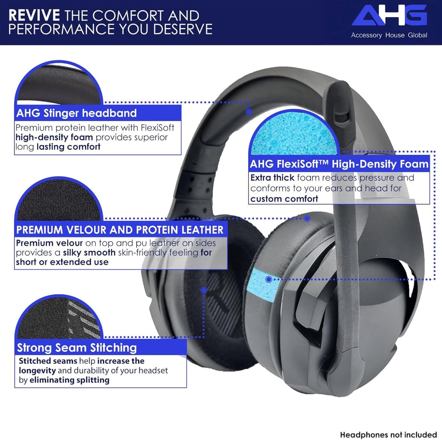 AHG Upgrade Replacement Hybrid Cloud Stinger Ear Pads Cushions and Headband Cover. Compatible with Kingston HyperX Cloud Stinger Headset. Premium Protein Leather and Velour | Thick AHG FlexiSoft Foam