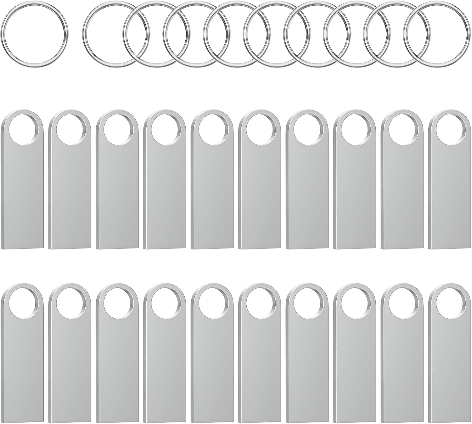 ABLAZE 4GB Flash Drive 20 Pack, Metal USB 2.0 Thumb Drives with Keychains USB Sticks Pendrives (Sliver)
