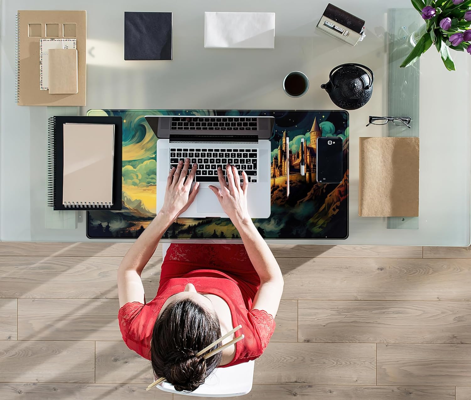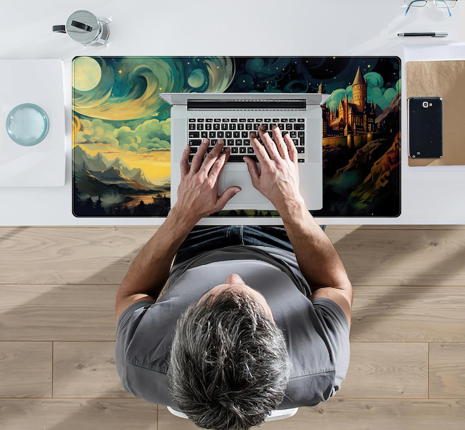 Cool Aesthetic Castle Mouse Pad Desk Pad Cute Cloudy and Starry Desk Mat, Office Desk Decor Anime Mousepad Laptop Keyboard and Mouse Mat, XXL Large Extended Gaming Deskmat for Girl 31.5x15.75 in