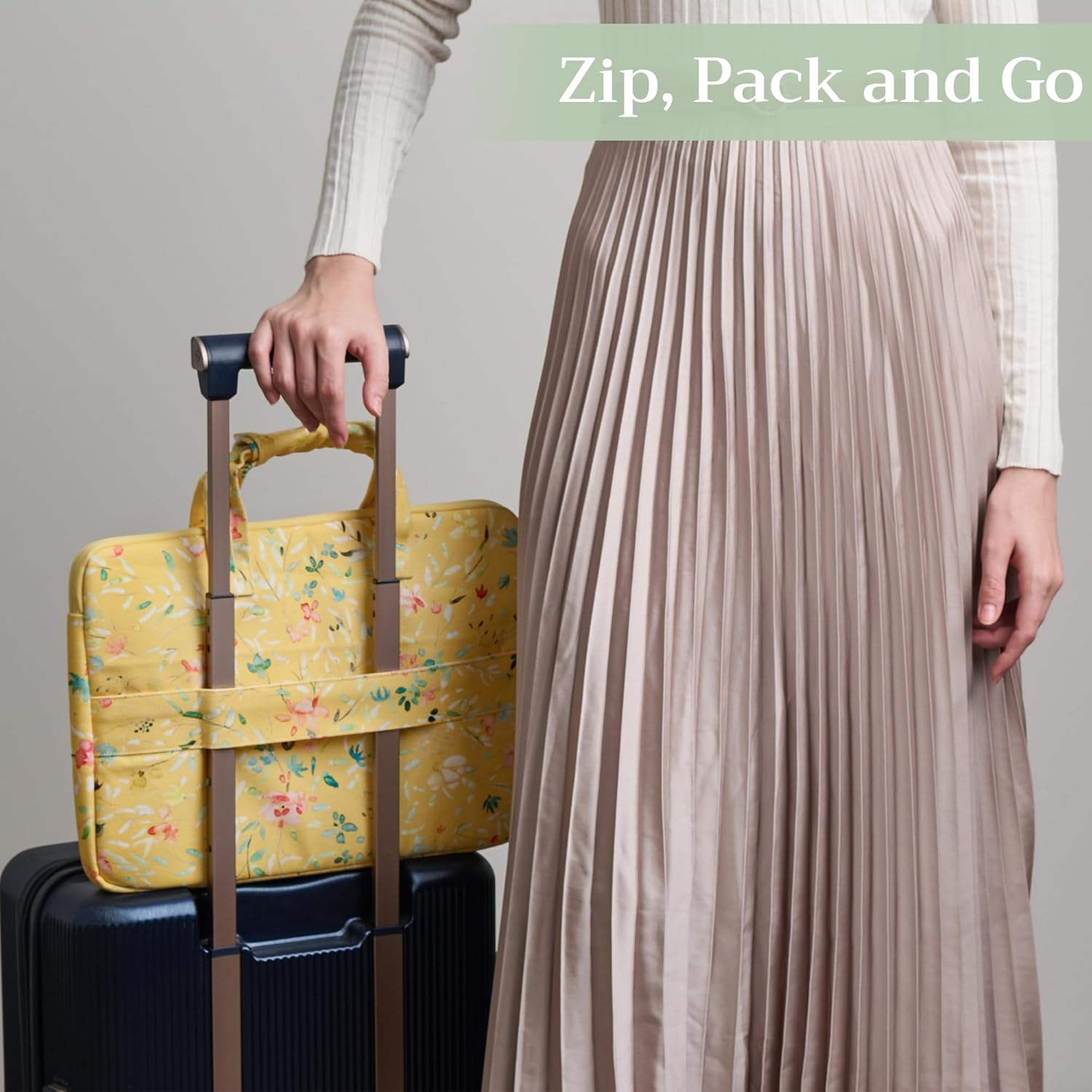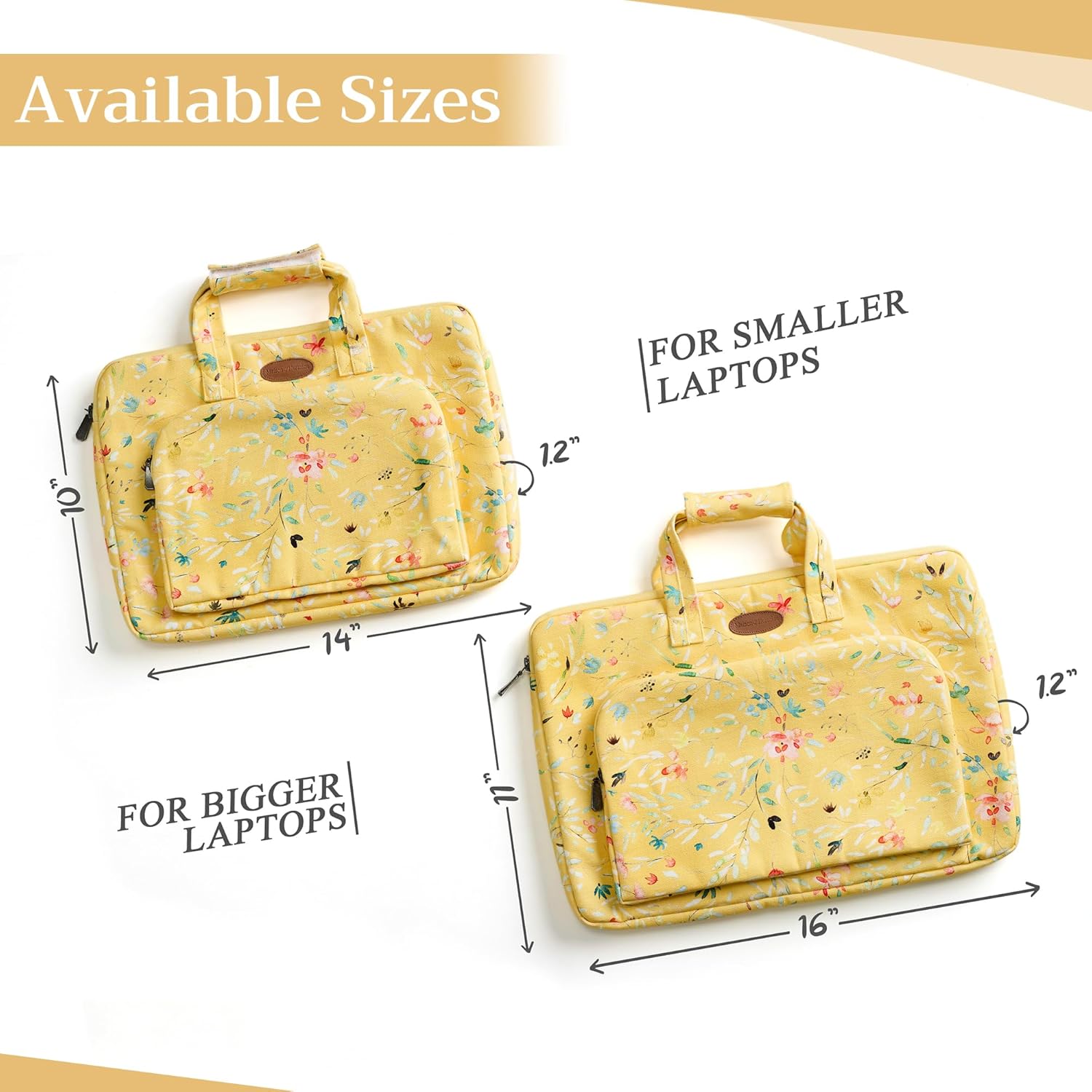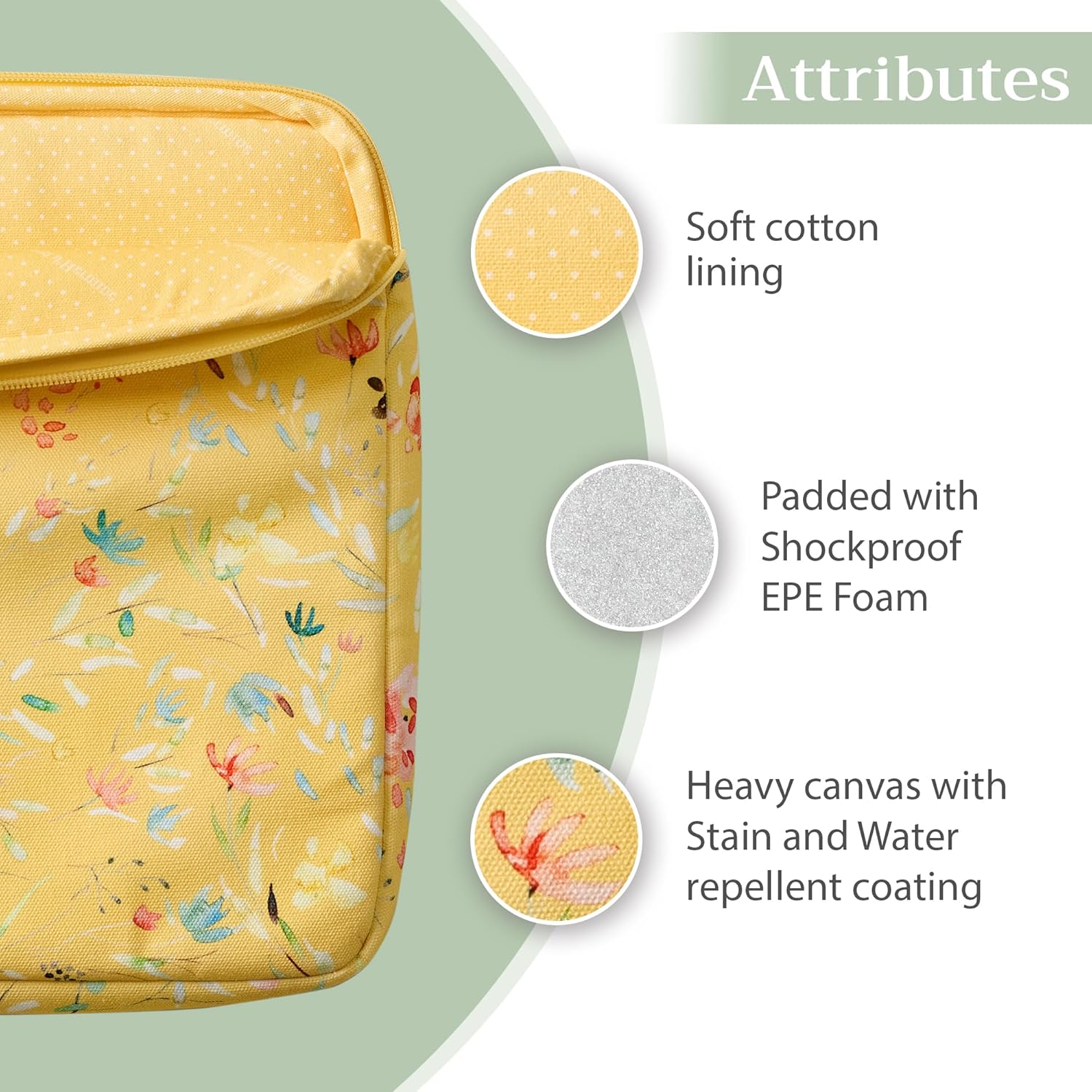 - These 100% Cotton laptop bags are made of high quality canvas fabric, which is slim and spacious bags made of solid materials and eye-catching patterns. It helps to protect laptop from dreaded knocks, spills, bumps, dings and accidental scratches.