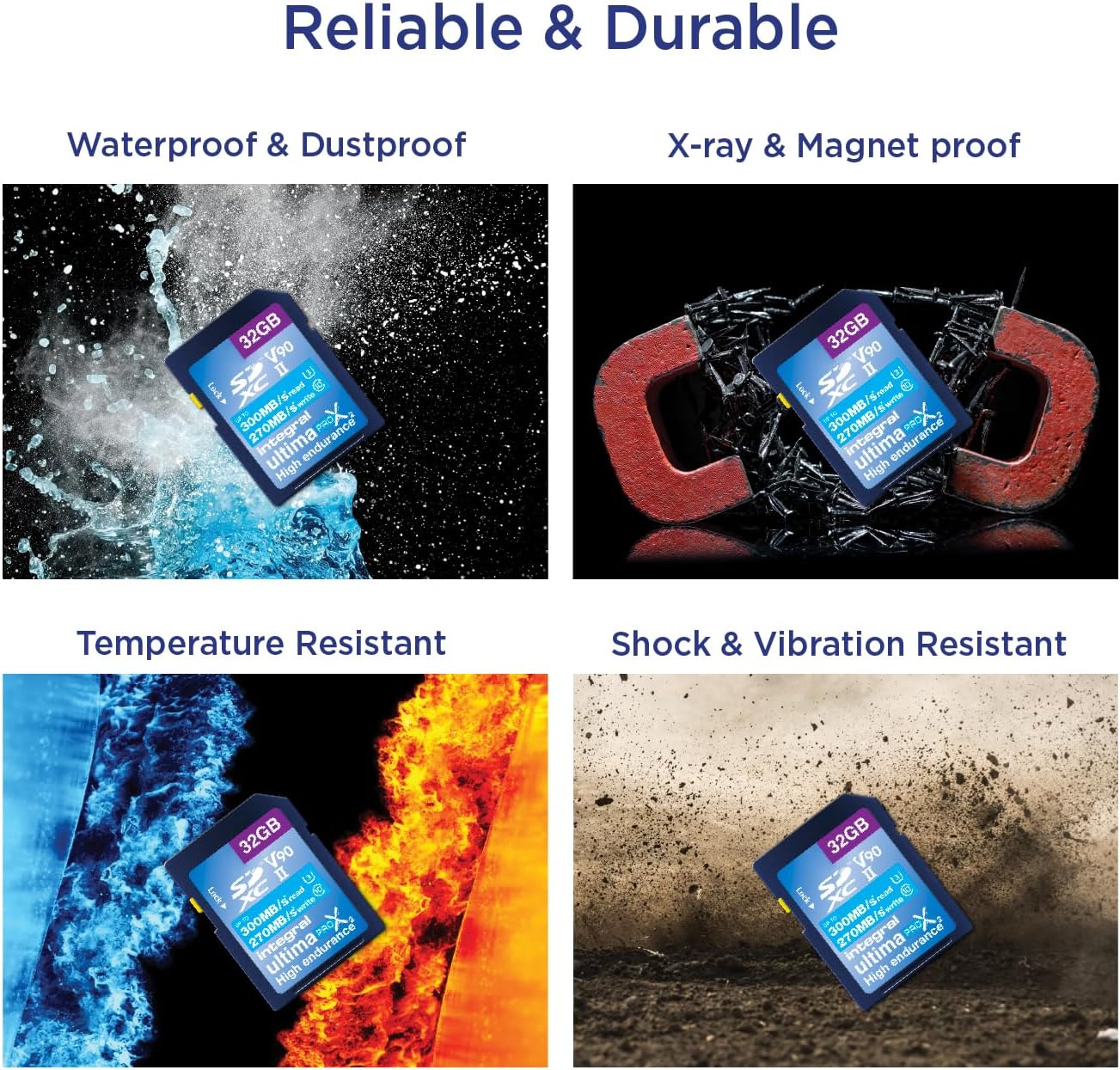 Integral 32GB UHS-II SD Card V90 Up to 300MBs Read and 270MBs Write Speed 1866X SDHC Professional High Speed Memory Card