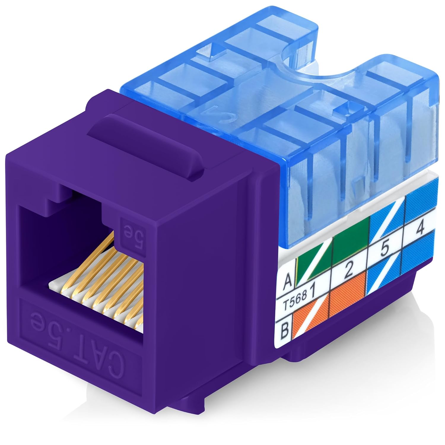 Everest 90° Angled RJ45 Cat5e Keystone Jacks 50-Pack in Purple - Slim Profile Female RJ45 Connectors - Cat 5e Keystone Jack - Compatible with 90° Angled Speed Termination Tool - easyJACK (B094WB91H3)