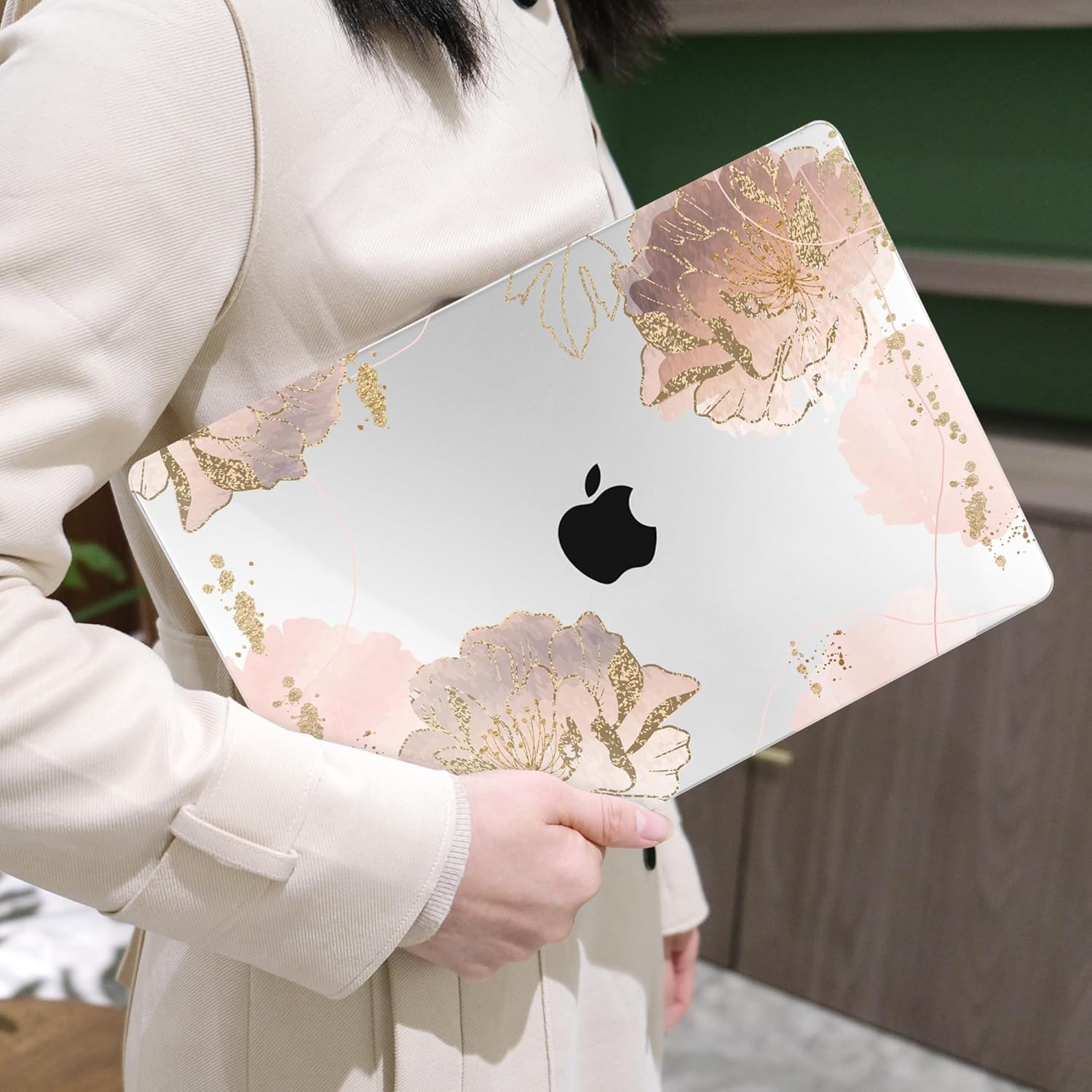 MEEgoodo for MacBook Air 13.3 inch Case 2021 2020 2019 2018 A2337 M1 A2179 A1932, Hard Shell with Keyboard Webcam Cover & Trackpad Film & Type C Adapter for MacBook Air M1, Pink Peony Flowers