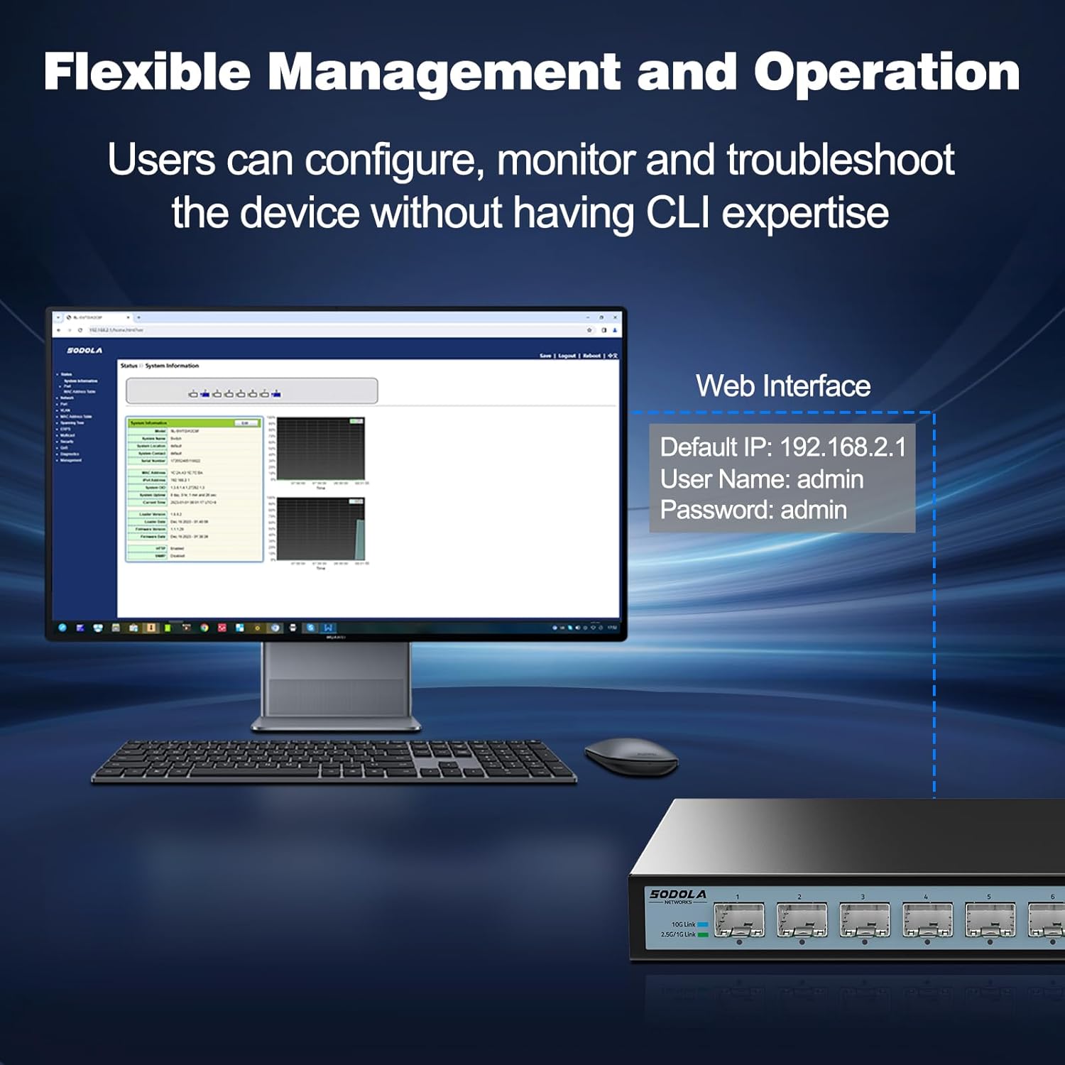 - 【Easy Web Management & Setup】Effortlessly manage device status and configurations (Link Aggregation, LACP, VLAN, QoS, IGMP, STP, SNMP, etc.) via the intuitive web interface. ⚠️ NOTE 1: Set IP address via IPv4 before login. ⚠️ NOTE 2: For initial management access, ensure the connecting PC and switch ports are set to the SAME speed (e.g., both 1G or both 10G).