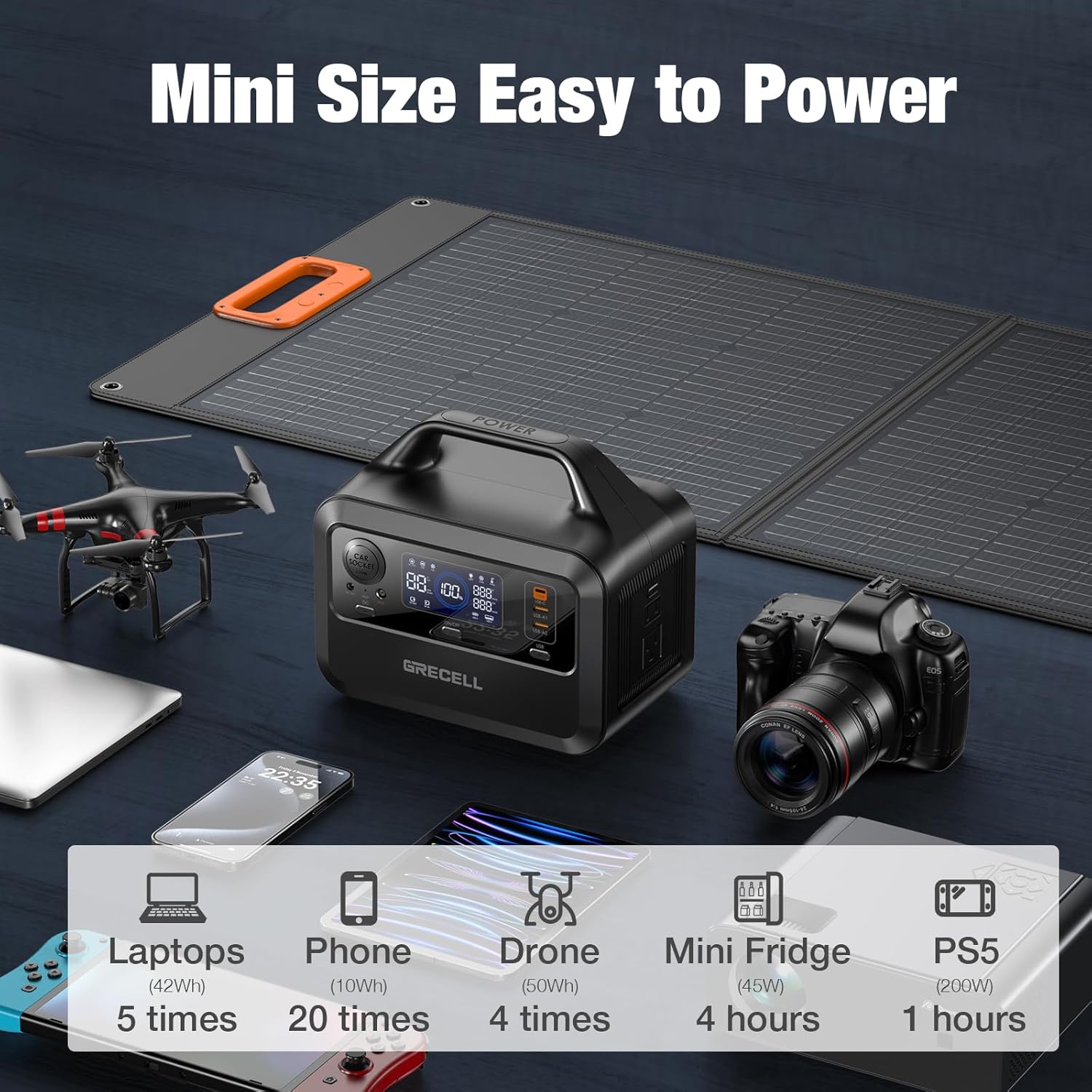 GRECELL Portable Power Station 300W, 230Wh LiFePO4 (LFP) Battery, 1.5hrs Fast Charging, 2 Up to 300W(Peak 600W) AC Outlets, Solar Generator for Outdoor Camping/RVs/Home Use