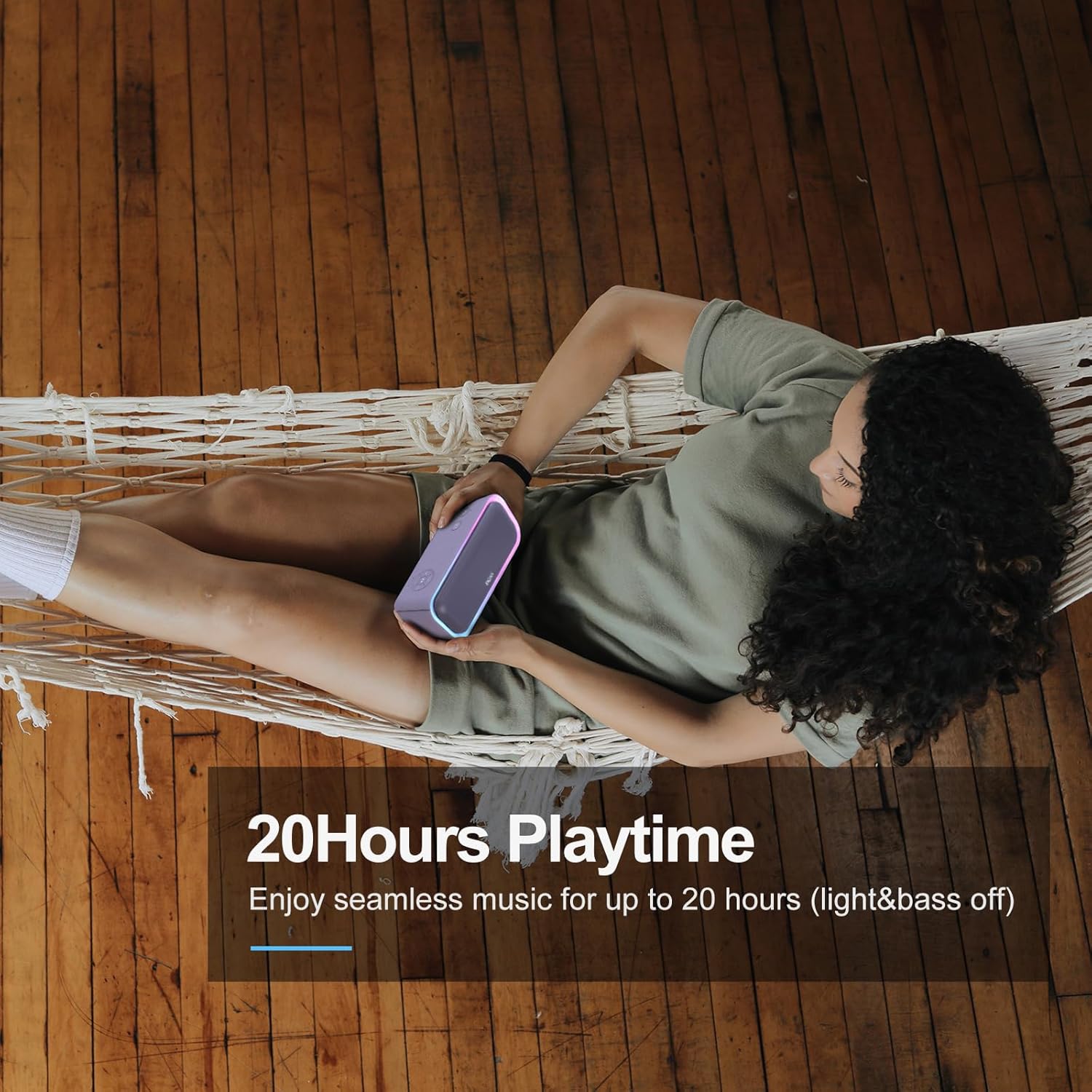 DOSS SoundBox Pro Bluetooth Speaker with 20W Stereo Sound, Active Extra Bass, IPX6 Waterproof, TWS Pairing, Multi-Colors Lights, 20H Playtime, Portable for Beach, Outdoor-Purple