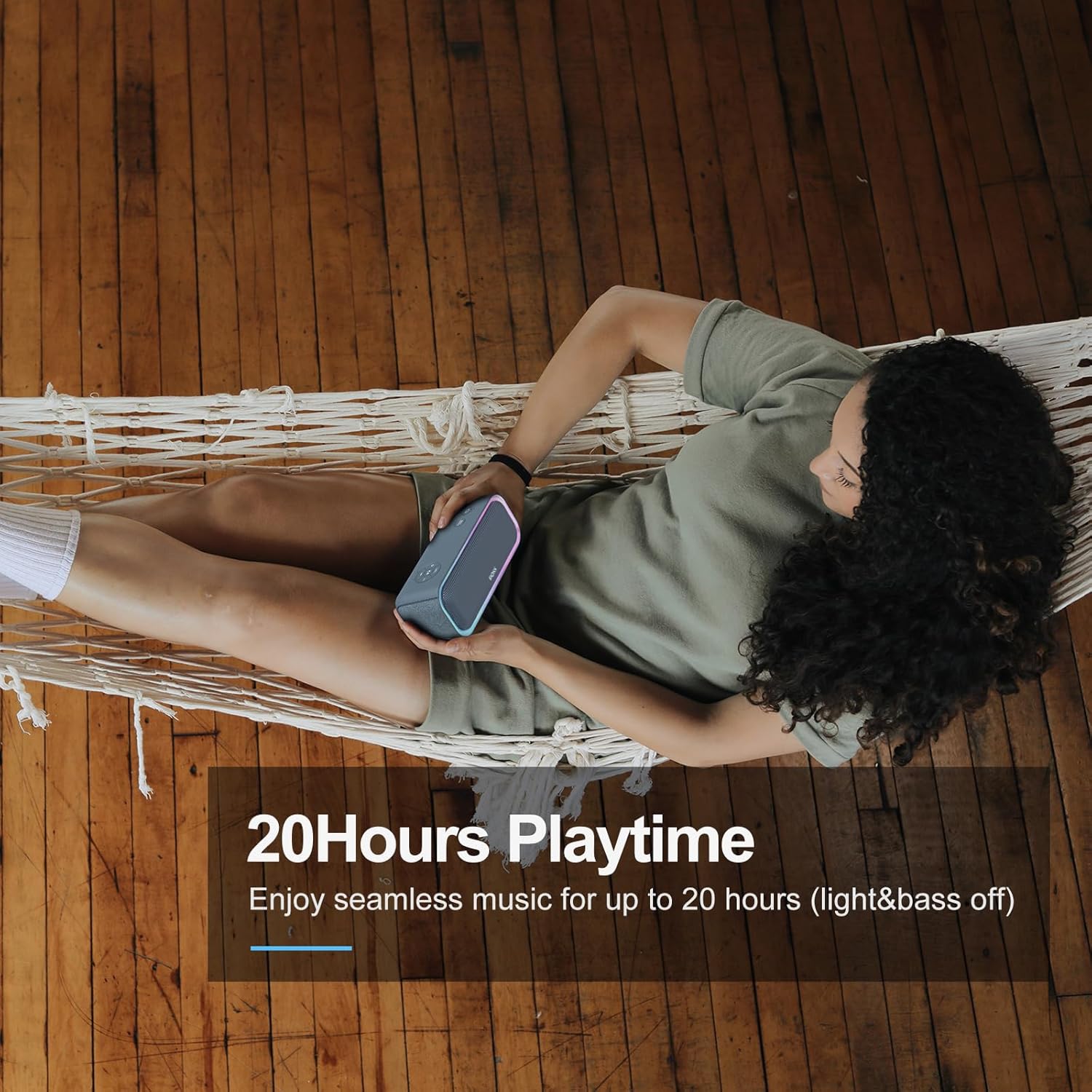 DOSS SoundBox Pro Bluetooth Speaker with 20W Stereo Sound, Active Extra Bass, IPX6 Waterproof, TWS Pairing, Multi-Colors Lights, 20H Playtime, Portable for Beach, Outdoor-Stone Blue