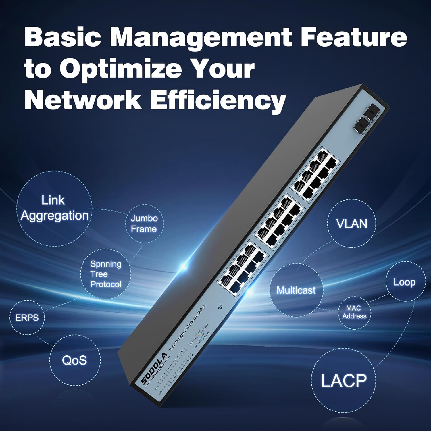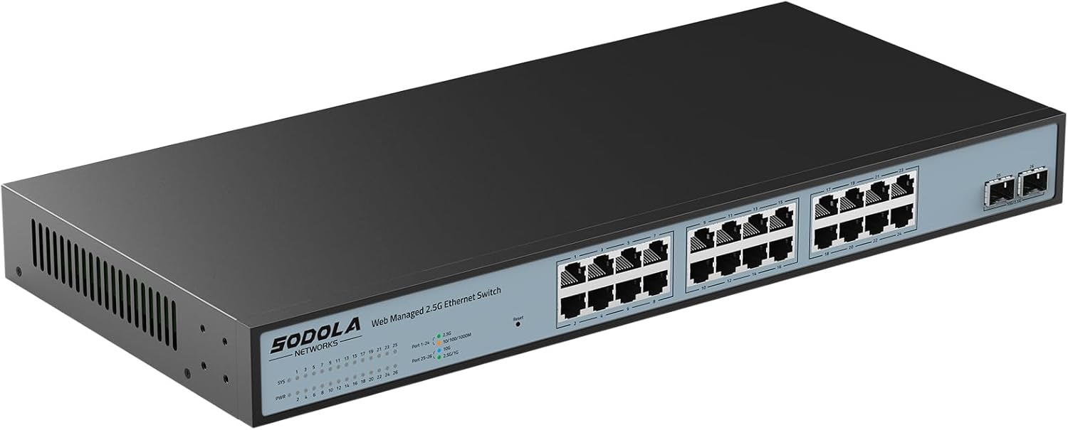 SODOLA 24 Port 2.5G Smart Web Managed Switch,24 x 2.5G Base-T Ports, 2 x 10G SFP+, Link Aggregation/QoS/VLAN/IGMP, 1U Mounted Multi-Gigabit Network Switch
