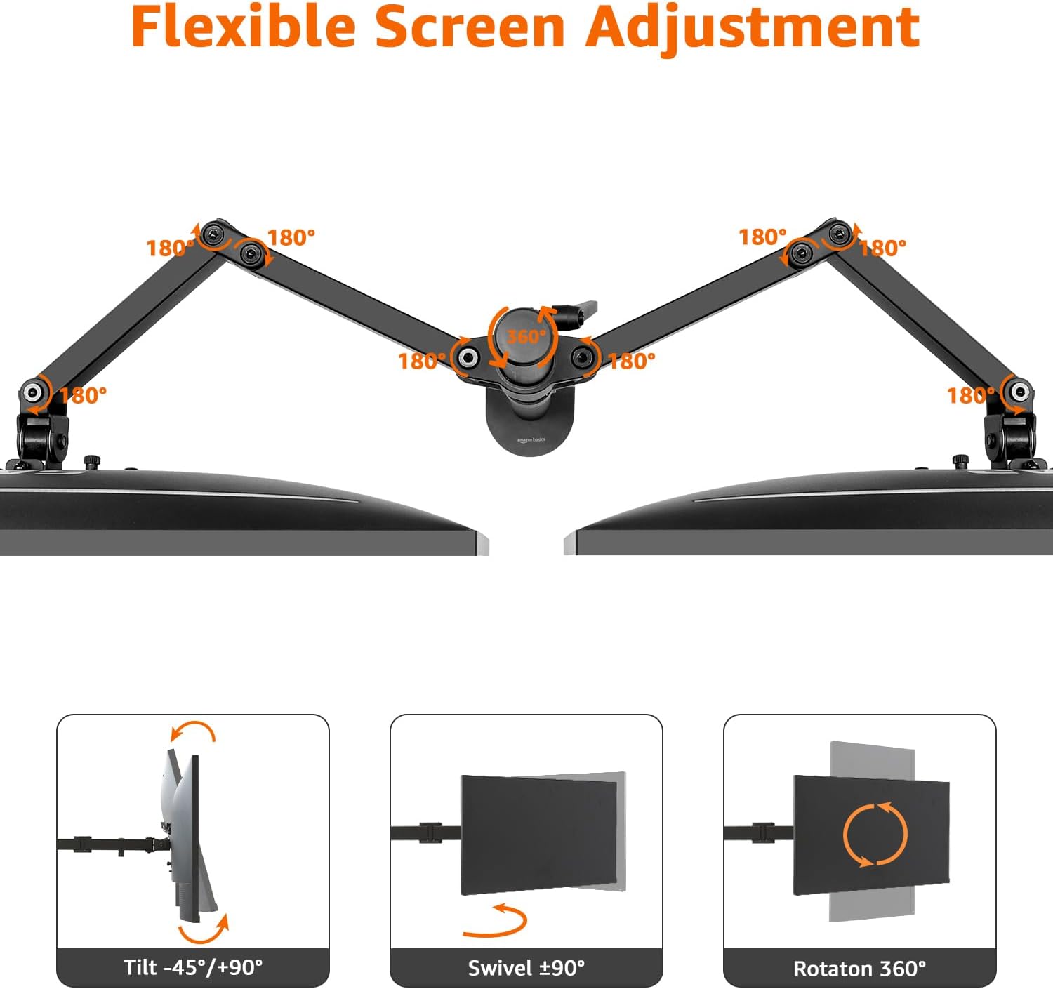 Amazon Basics Adjustable Dual Computer Monitor Arm Mount, Holds up to 32" Monitors, Black