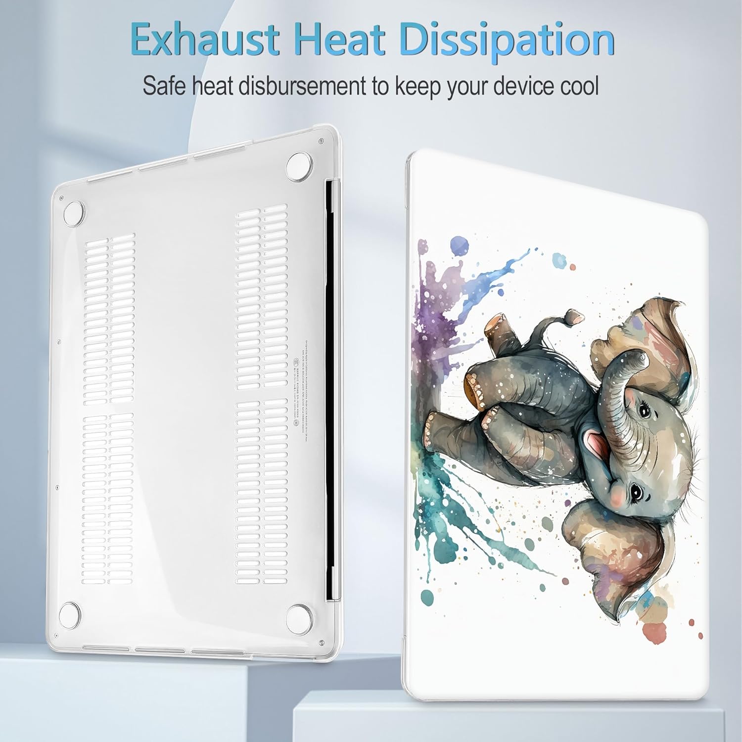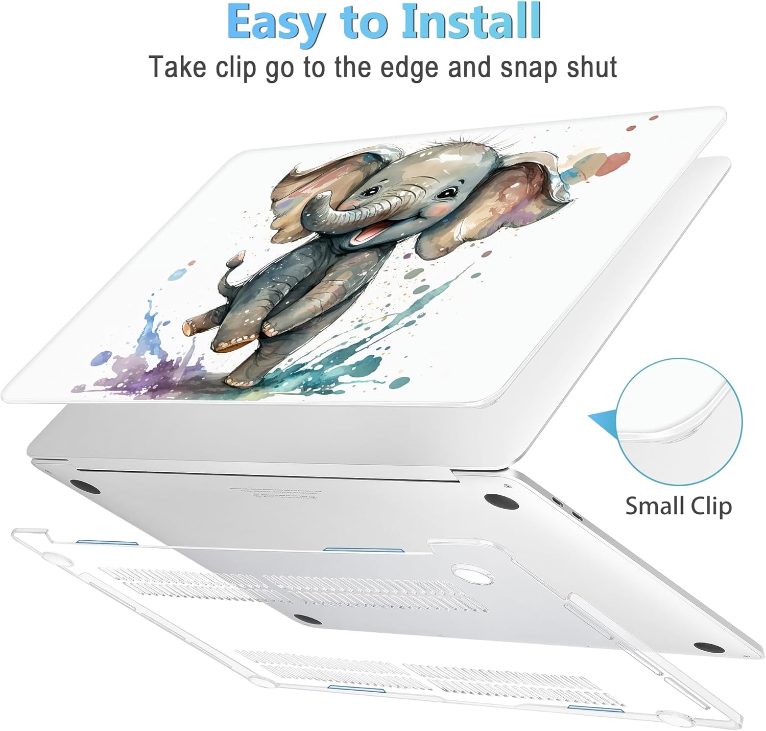 Mektron for MacBook Air 13 Case A1466/A1369 (2010-2017 Release), Snap-on Plastic Hard Shell Cover for MacBook Air 13.3 inch with Keyboard Cover, Cute Elephant