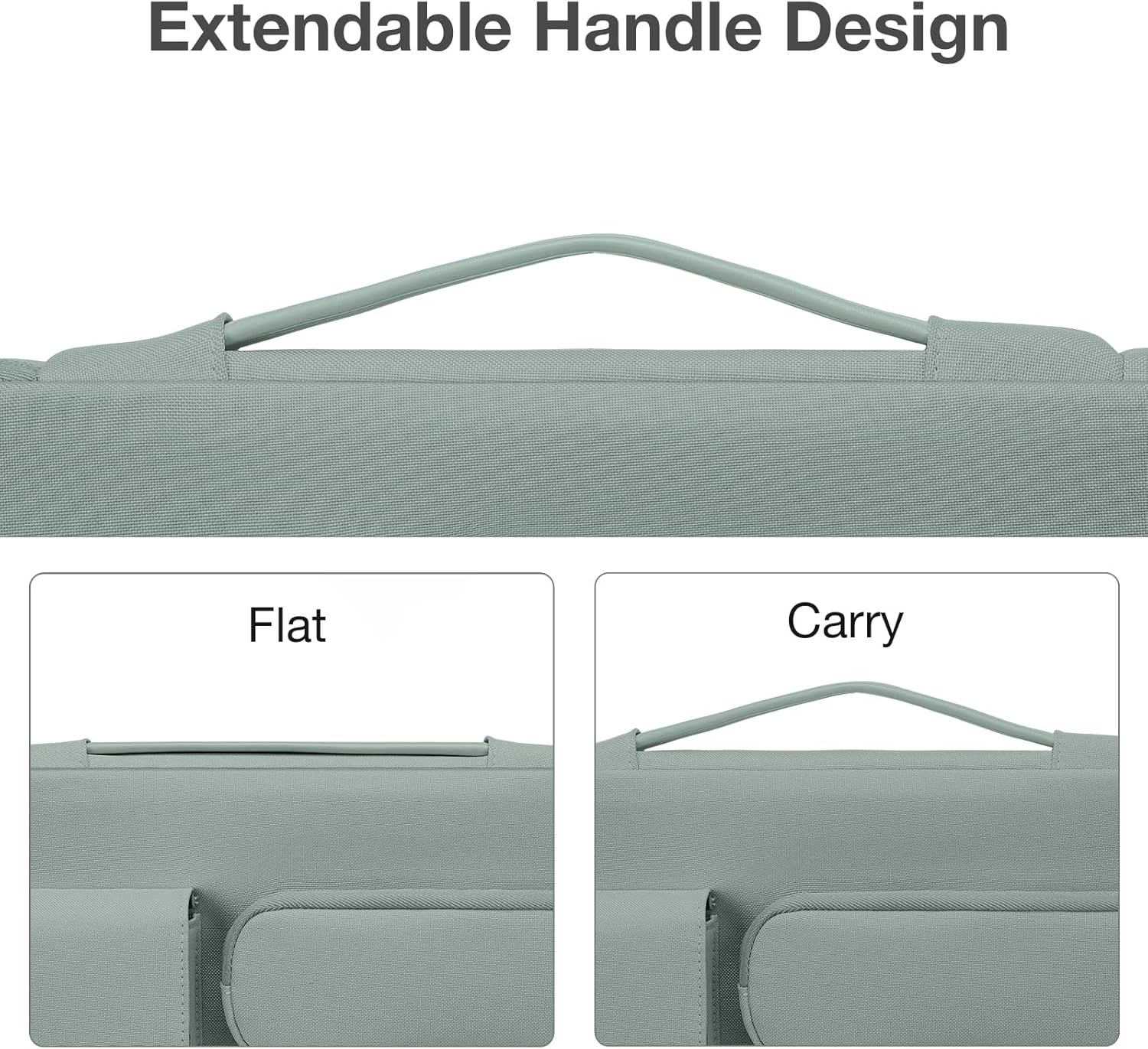 - 360 degree all around protective reinforced interior edge briefcase carrying case bag protect your laptop from any accidental dropping. Extendable handle design makes it to carry your laptop around in comfort, you can also tuck away the handle. Side opening zipper design, avoid accidental dropping of your laptop while carrying. 2 raised & 1 flapover pockets are convenient for quick-access and store cell phone, wallet, keys and other small items.