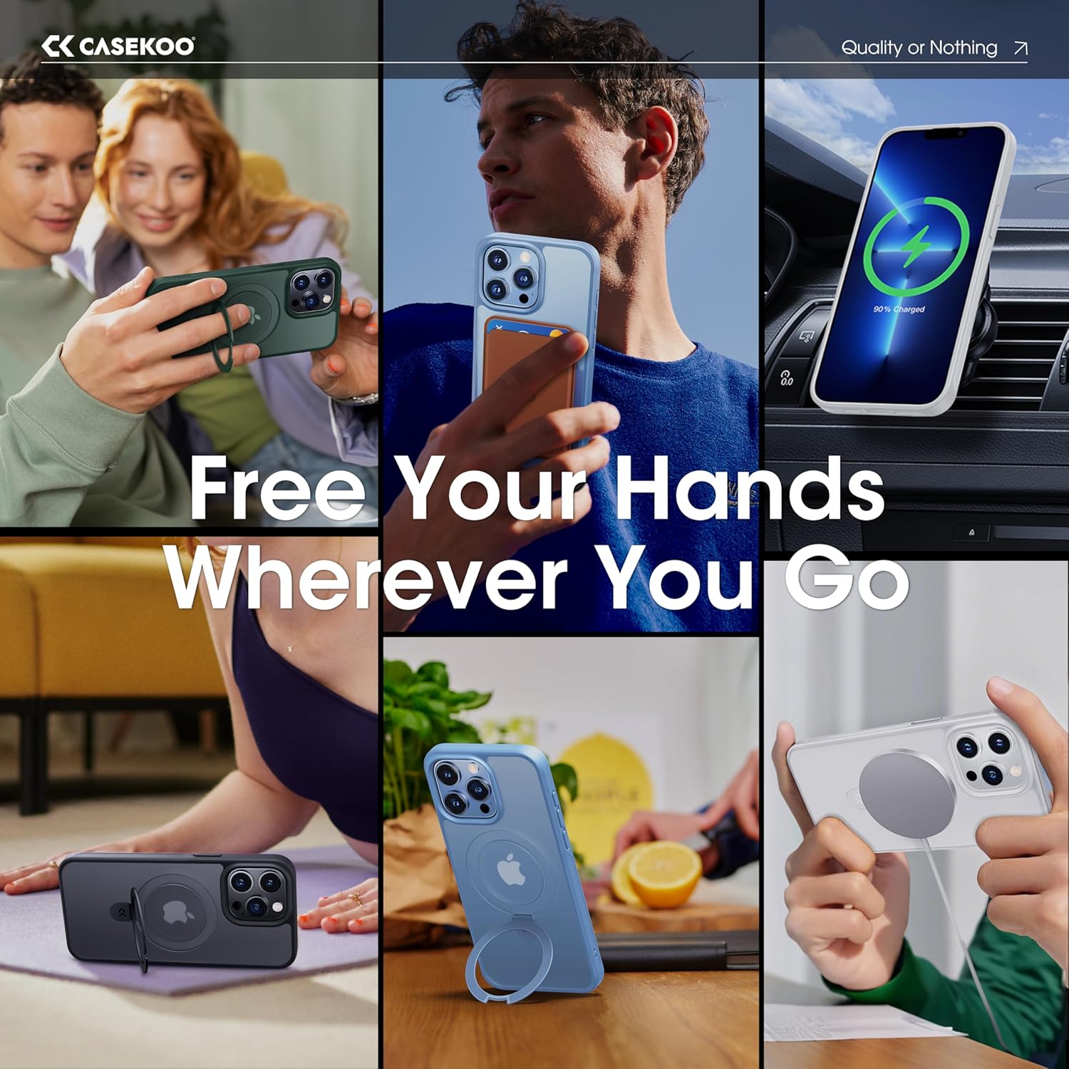 - [Ultra Magnetism- 25W Upgrade] The MagicStand Case is compatible with all MagSafe accessories and third-party Qi-certified wireless chargers. It provides a built-in 48 pcs magnets ring structure, explicitly arranged with CASEKOO's MagPrime array technology, allowing for 2 TIMES STRONGER magnetism than the Official's. MagPrime ensures almost 0% POWER LOSS during wireless charging, making charging FASTER YET SAFER