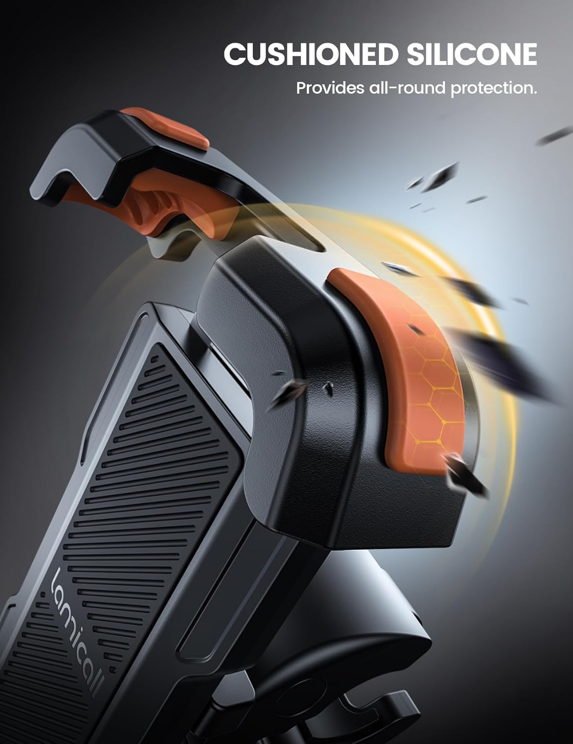 Lamicall Motorcycle Phone Mount, Bike Phone Holder - Upgrade Quick Install Handlebar Clip for Bicycle Scooter, Cell Phone Clamp for iPhone 15 14 13 Pro Max, Galaxy S23 and More 4.7-6.8" Phone, Orange
