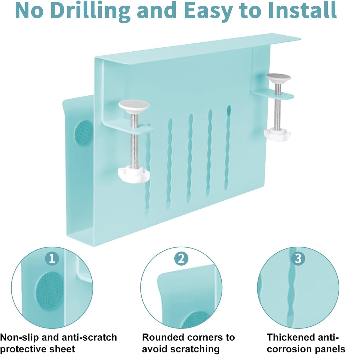 - 【Clamp On & No Drill Design】The Clamp Under Desk Storage requires no drilling and tools, it is very easy for you to install, and the silicone cushion can prevents scratches on desks and other objects, the rounded corners design can also avoid scratches. It only took you 2 minutes to install our Clamp on Desk Organizer to your desk.