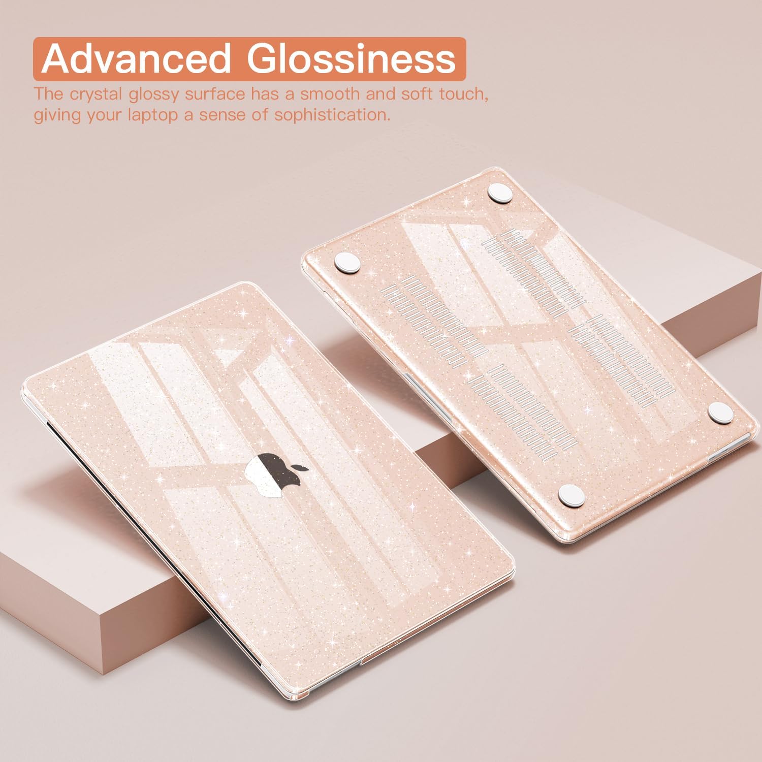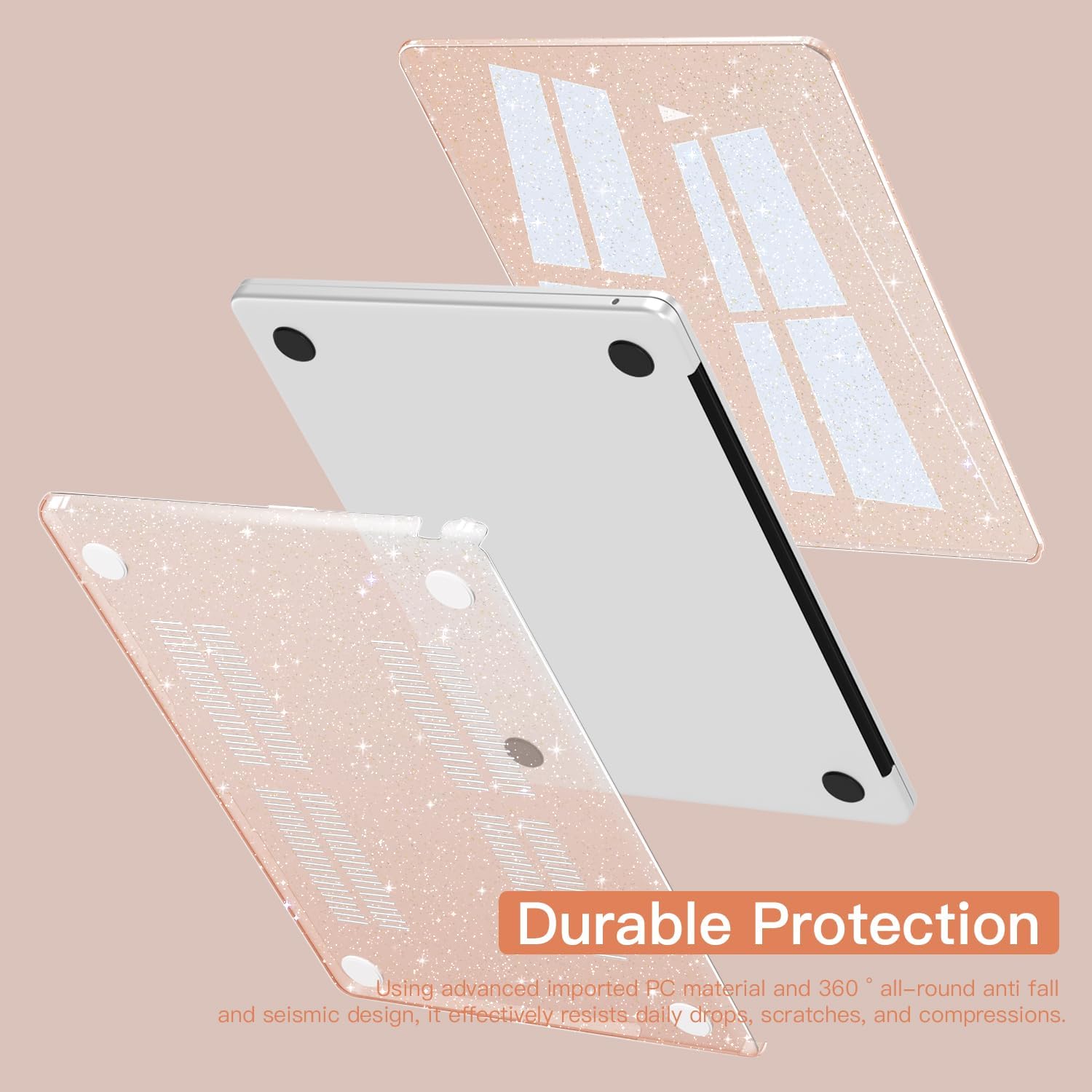 CISSOOK Cherry Pink Glitter Case for MacBook Air 13.6 inch 2025 2024 2022 Released A3240 A3113 A2681, Bling Hard Shell Case with Keyboard Cover & Screen Protector for MacBook Air 13 M2 M3 M4