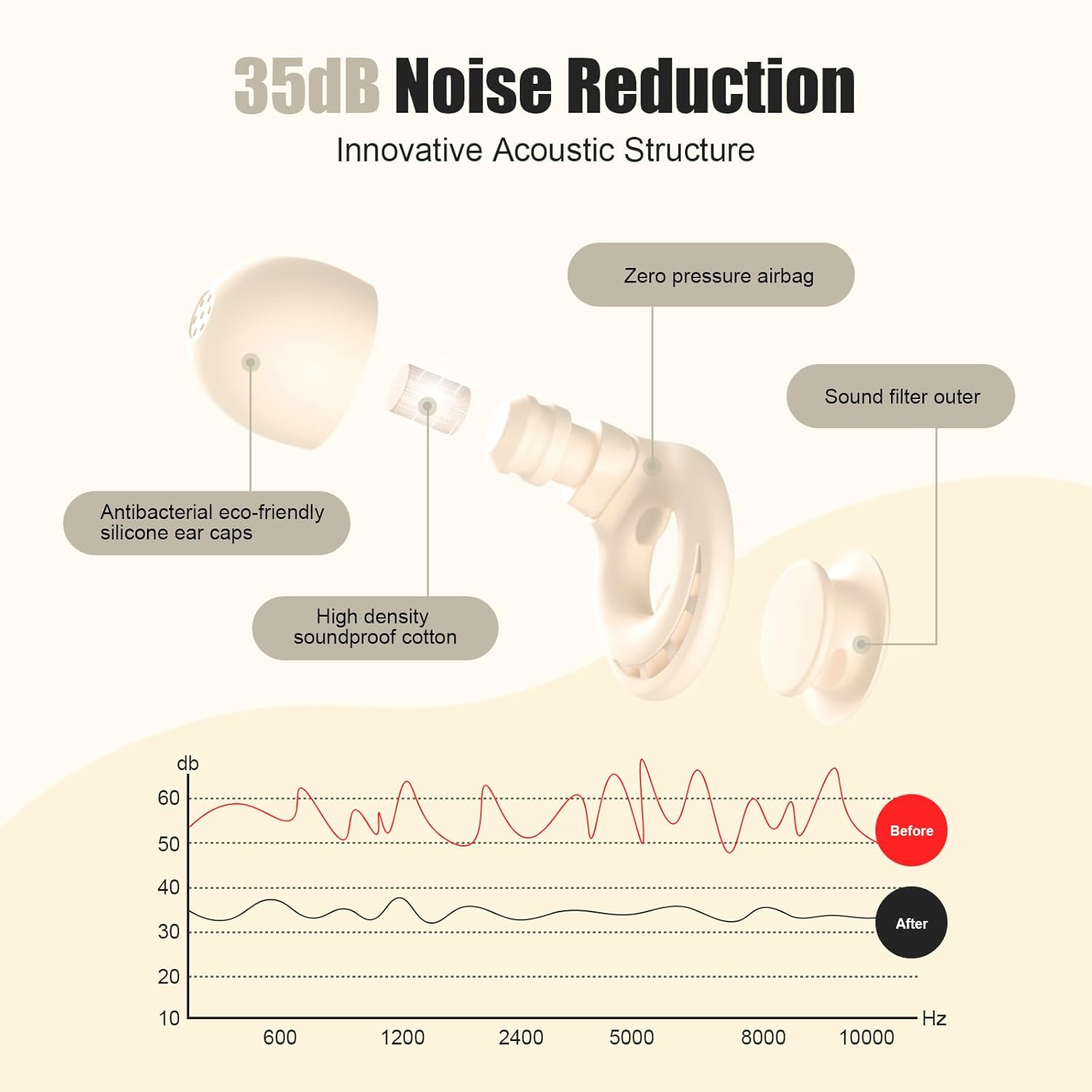 Ear Plugs for Sleeping Noise Reduction, Beinkap Reusable Earplugs Hearing Protection for Focus, Study, Work – 6 Pair Eartips in S/M/L – Flexible Silicone Soft – 35dB Noise Cancelling - Skin