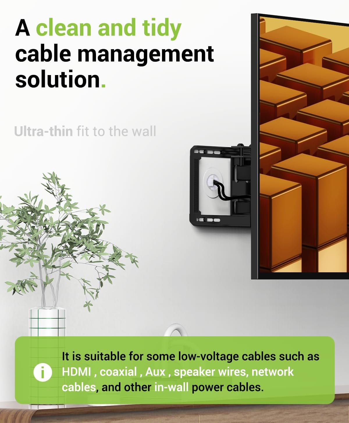 - MANAGE CABLES EFFICIENTLY: The LEENUE tv mount wire hider kit is designed to hide messy cables behind your TV or any other living room area, providing a clean and tidy wall. The hide cords wall mounted tv can accommodate TV cables, like HDMI, speaker wires, and other low-voltage cables.