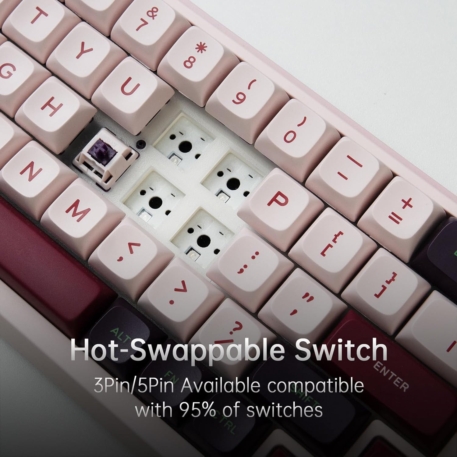- Full-Key Hot-Swap Functionality--The KZZI K68 PRO offers full-key hot-swappable sockets, allowing you to customize your keyboard with ease. Switch out your key switches without soldering, tailoring the typing experience to your personal preference
