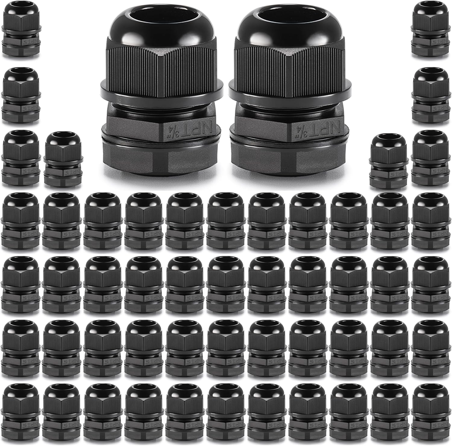 QILIPSU 50pcs 3/4" NPT Cable Gland Waterproof IP68 Nylon Cable Pass Through Cord Grip Connector Strain Relief Wire Grommet